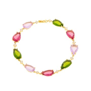 Βραχιόλι βυζαντινό με πολυχρωμά ζιργκόν, επιχρυσωμένο ασήμι (925°)