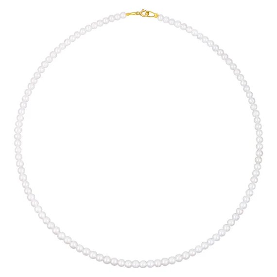 Ένα γυναίκειο κολιέ από λευκά στρογγυλά μαργαριτάρια γλυκού νερού Fresh Water Pearl 5 – 5,5 mm και χρυσό κούμπωμα K9 (375°).