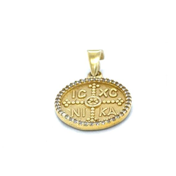 Φυλαχτό Κωνσταντινάτο διπλής όψεως με ζιργκόν, το οποίο είναι φτιαγμένο από επιχρυσωμένο ασήμι (925°).