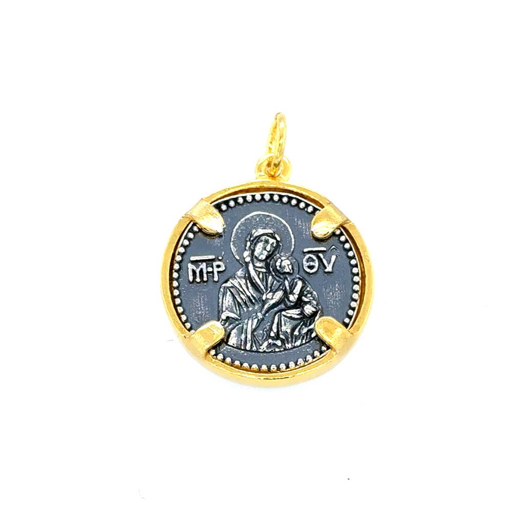 Double-sided Amulet Saint Christopher – Virgin Mary, made of gold plated silver (925°).
