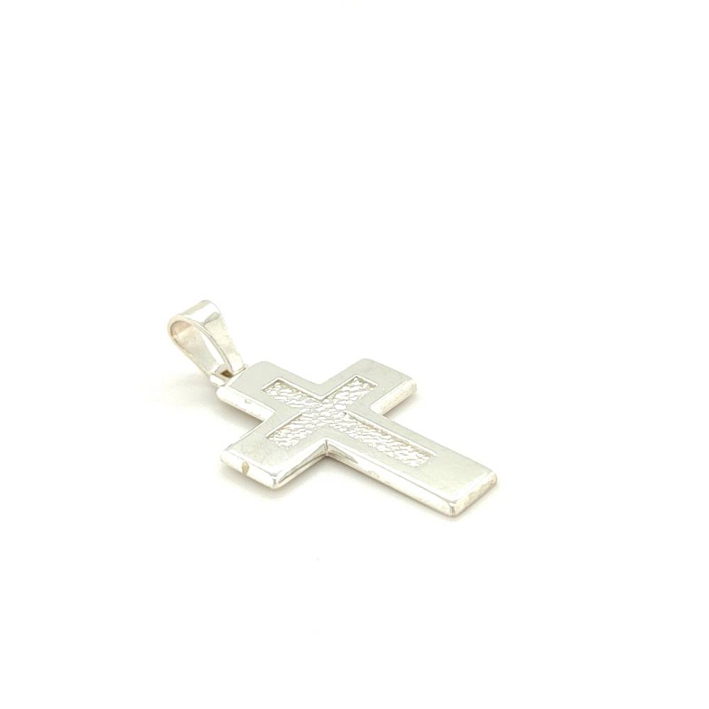 Ένα μενταγιόν σταυρός από ασήμι (925°) σε διάσταση 2,8 x 2,1 cm, δεν περιλαμβάνεται η αλυσίδα.