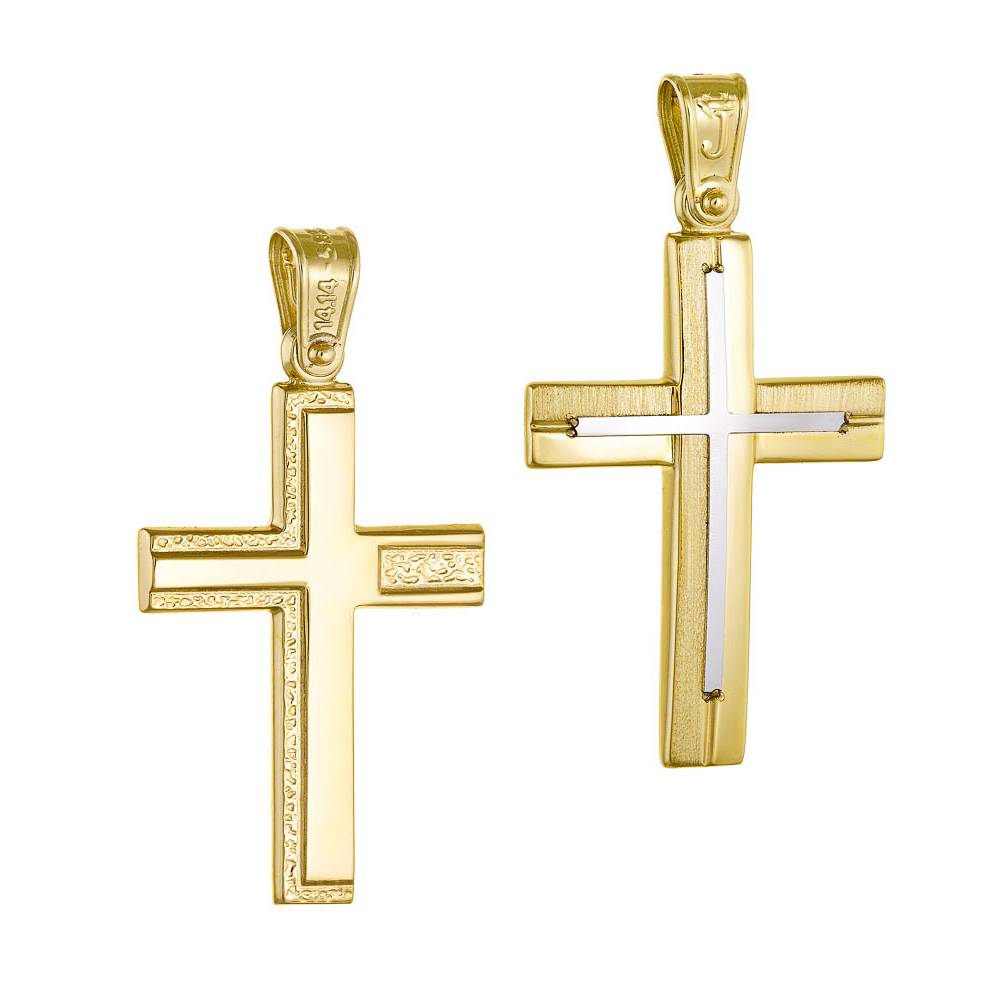 Ανδρικός σταυρός διπλής όψεως , χρυσός K14 (585°)