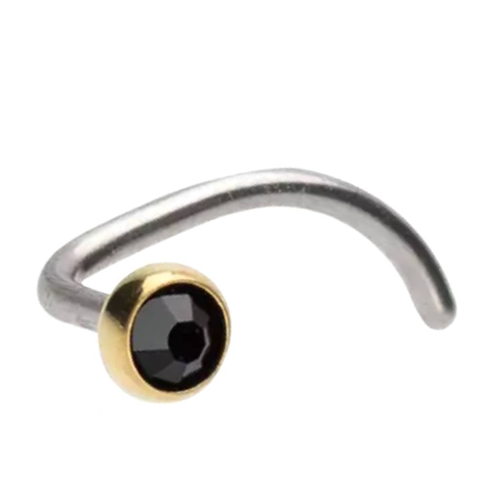 Hypoallergenic Blomdahl earrings for the nose made of gold natural titanium, with black crystalline stone dimension 3mm. Blomdahl earrings were developed in consultation with expert dermatologists, from gold titanium. Design Diameter 3mm. Jewelry code: 17-1302-72.