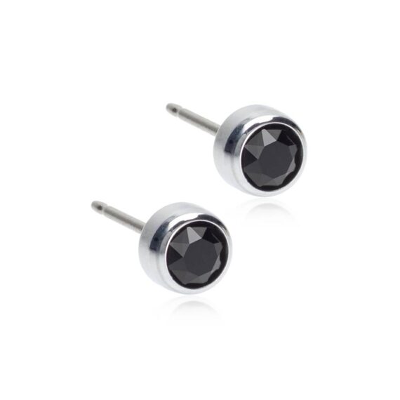 Υποαλλεργικά σκουλαρίκια Blomdahl από ιατρικό τιτάνιο με μαύρη κρυσταλλική πέτρα , διαστάσεως 5mm. Τα σκουλαρίκια Blomdahl αναπτύχθηκαν σε συνεννόηση με ειδικούς δερματολόγους, από φυσικό τιτάνιο. Διάμετρος Σχεδίου 5mm. Κωδικός κοσμήματος: 15‑1424-72 .