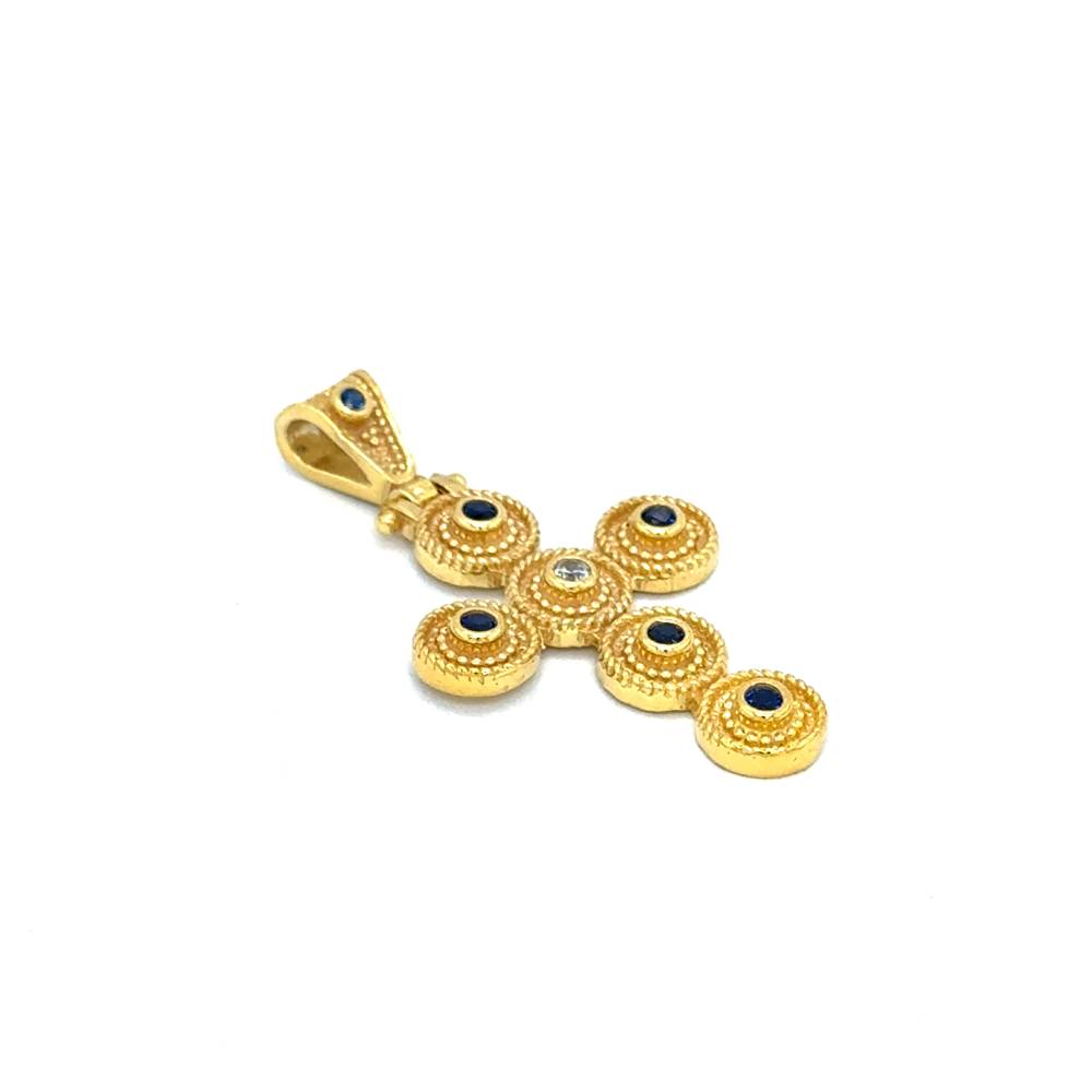 Byzantine cross with blue zircons, gold-plated silver (925°)