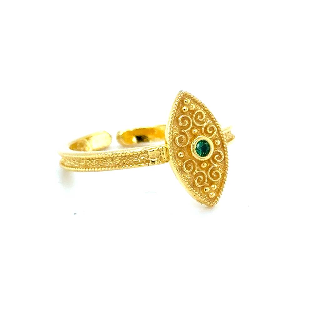 A Byzantine ring with green zircon, made of silver (925°) gold plated.