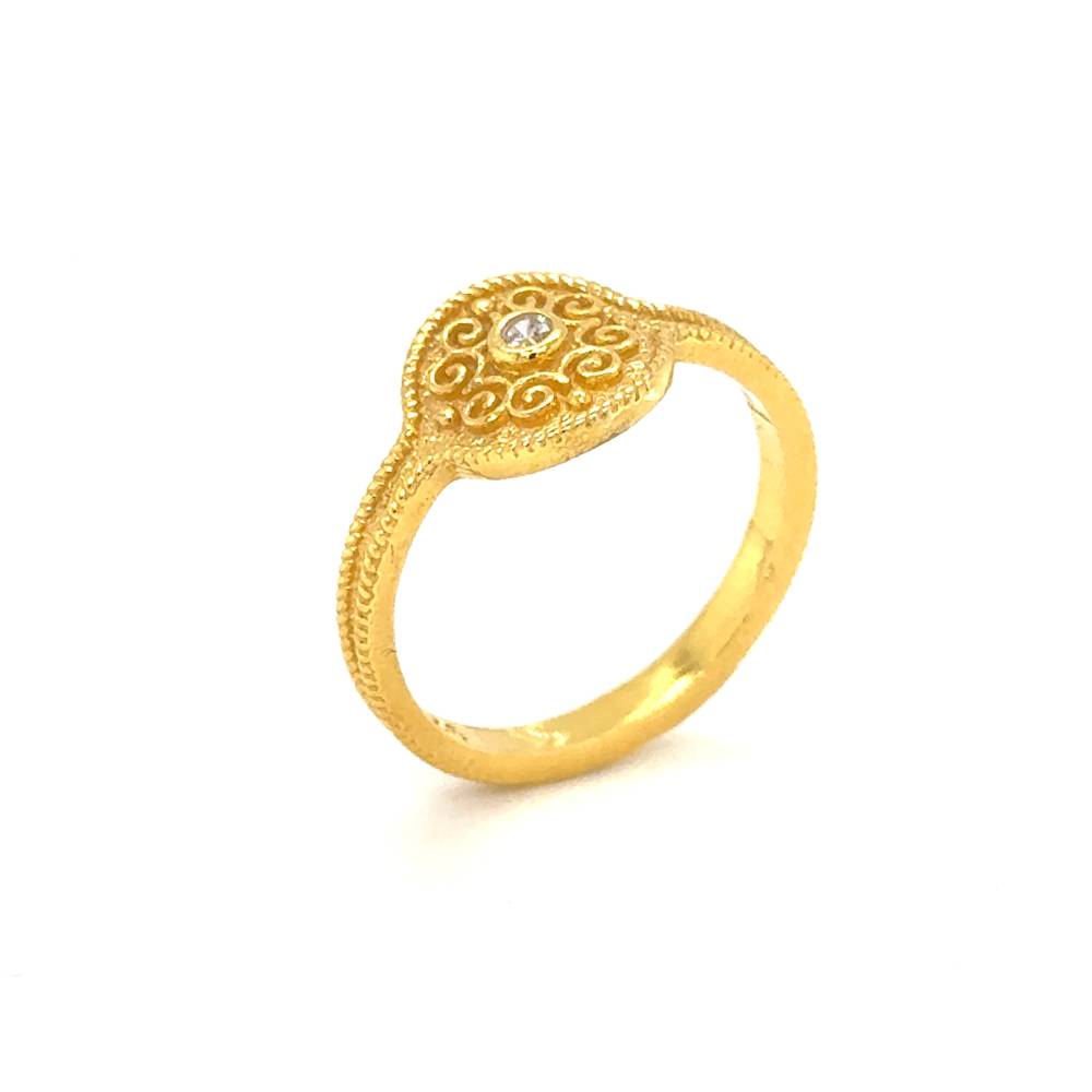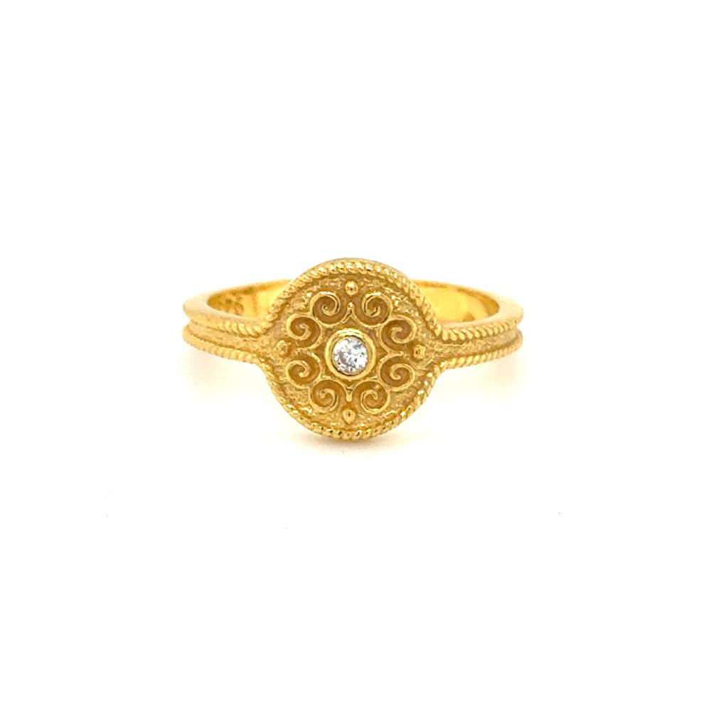 A Byzantine ring with white zircon, made of silver (925°) gold plated.