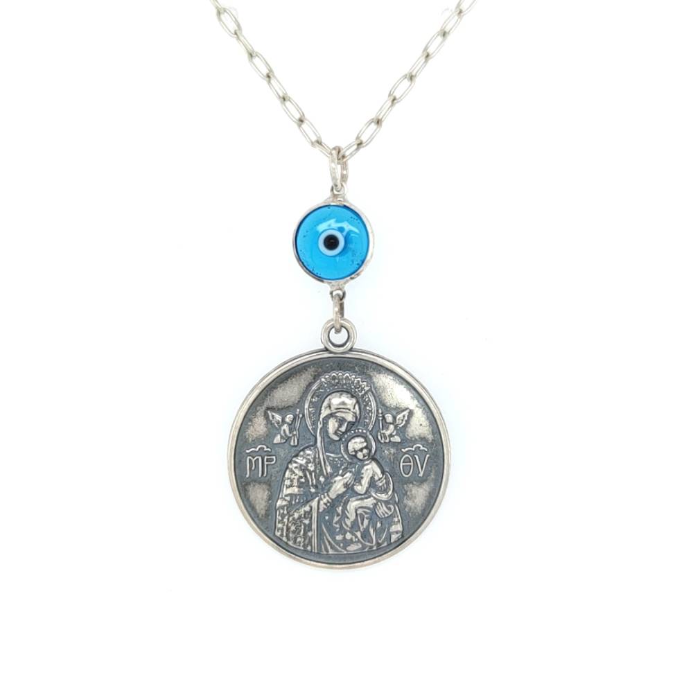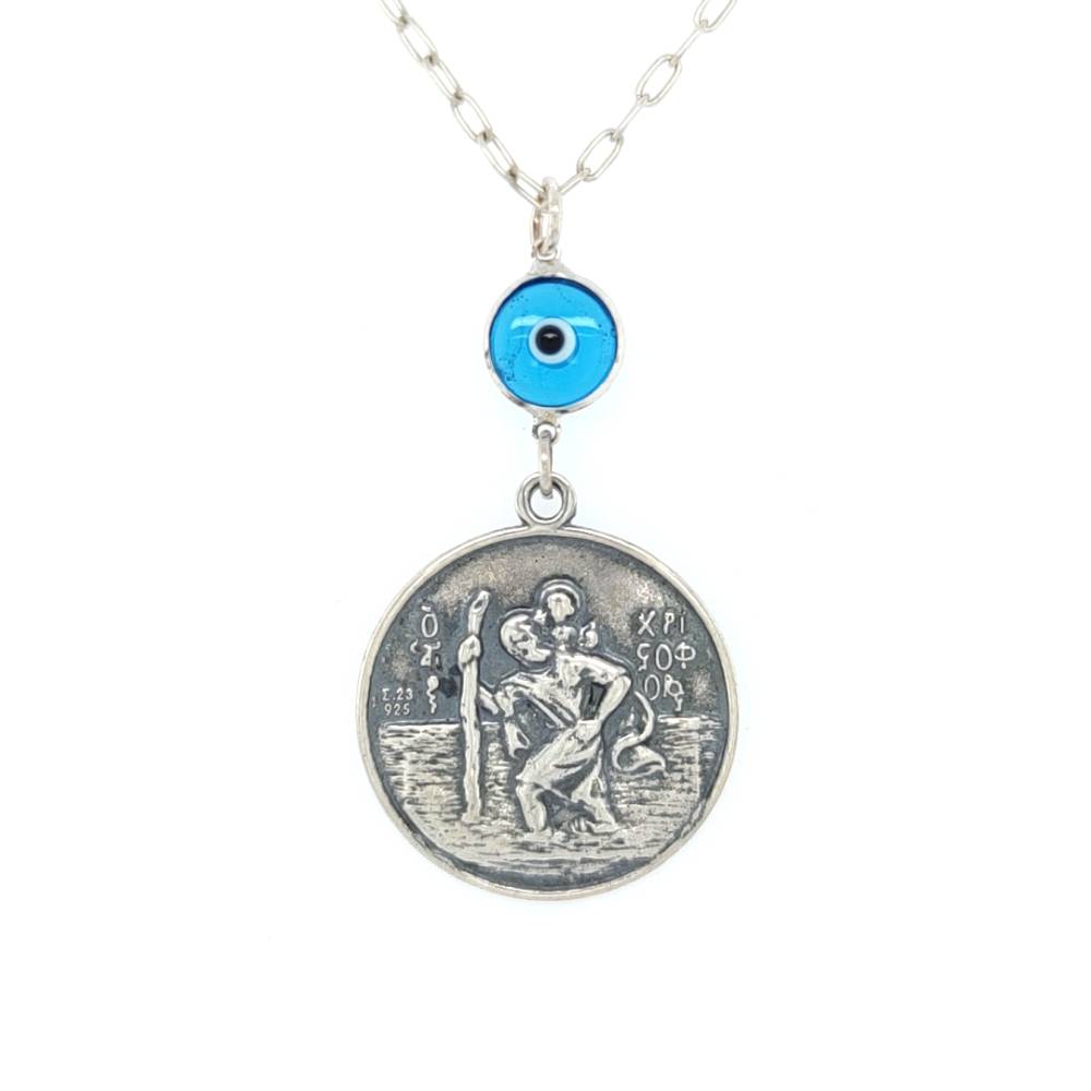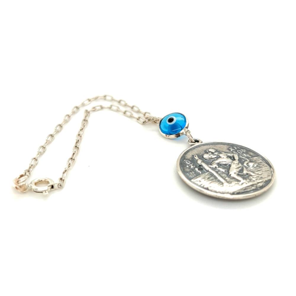 Car charm silver (925°),double-side Saint Christopher – Virgin Mary and evil eye