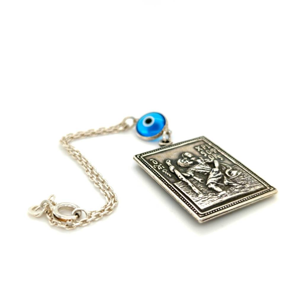 Car charm silver (925°),double-side Saint Christopher – Virgin Mary and evil eye