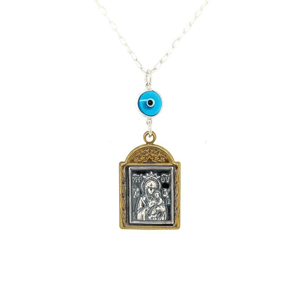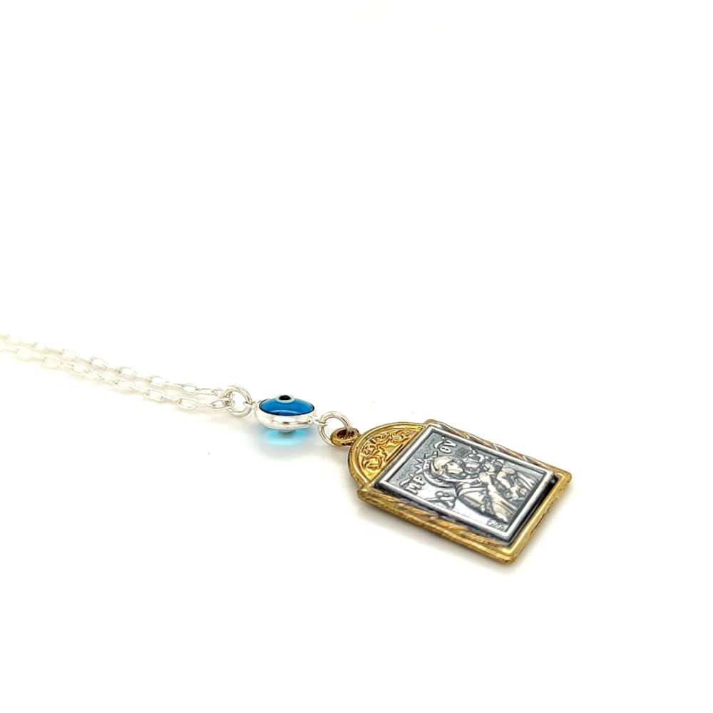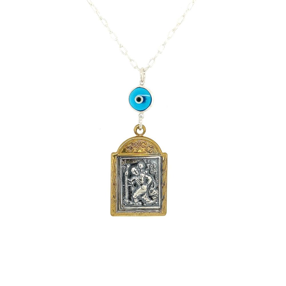Car charm silver (925°),double-side Saint Christopher – Virgin Mary and evil eye