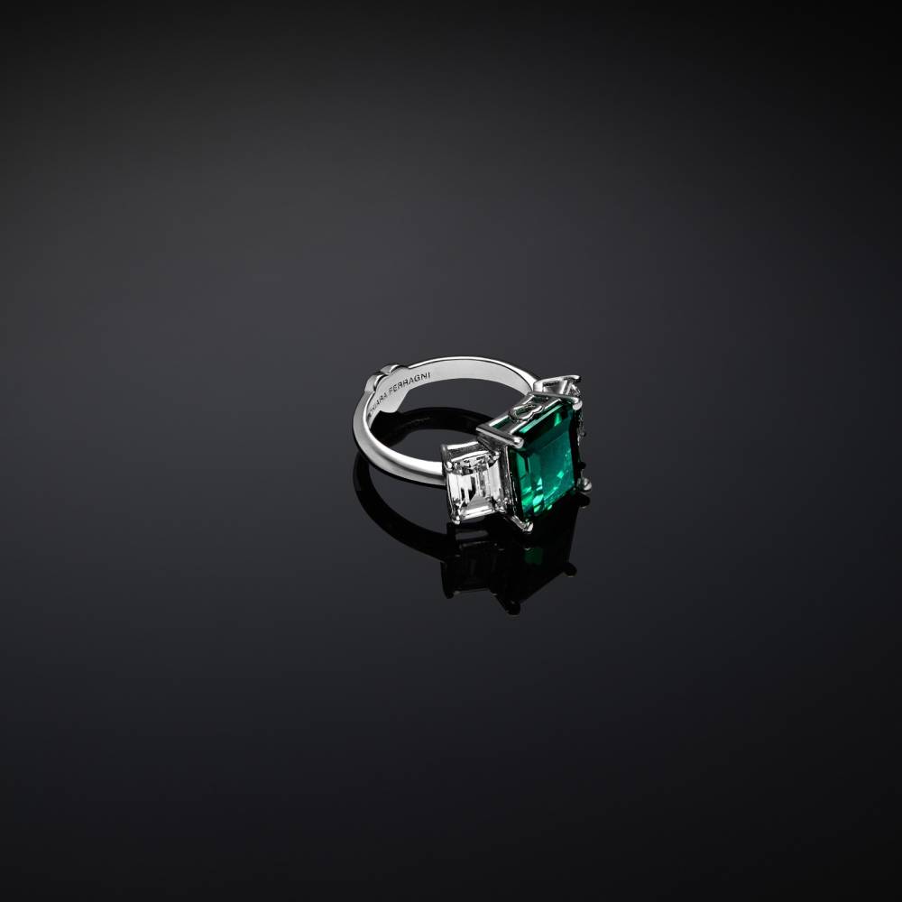 CHIARA FERRAGNI EMERALD TRILOGY RING, SIZE 16, J19AWJ05