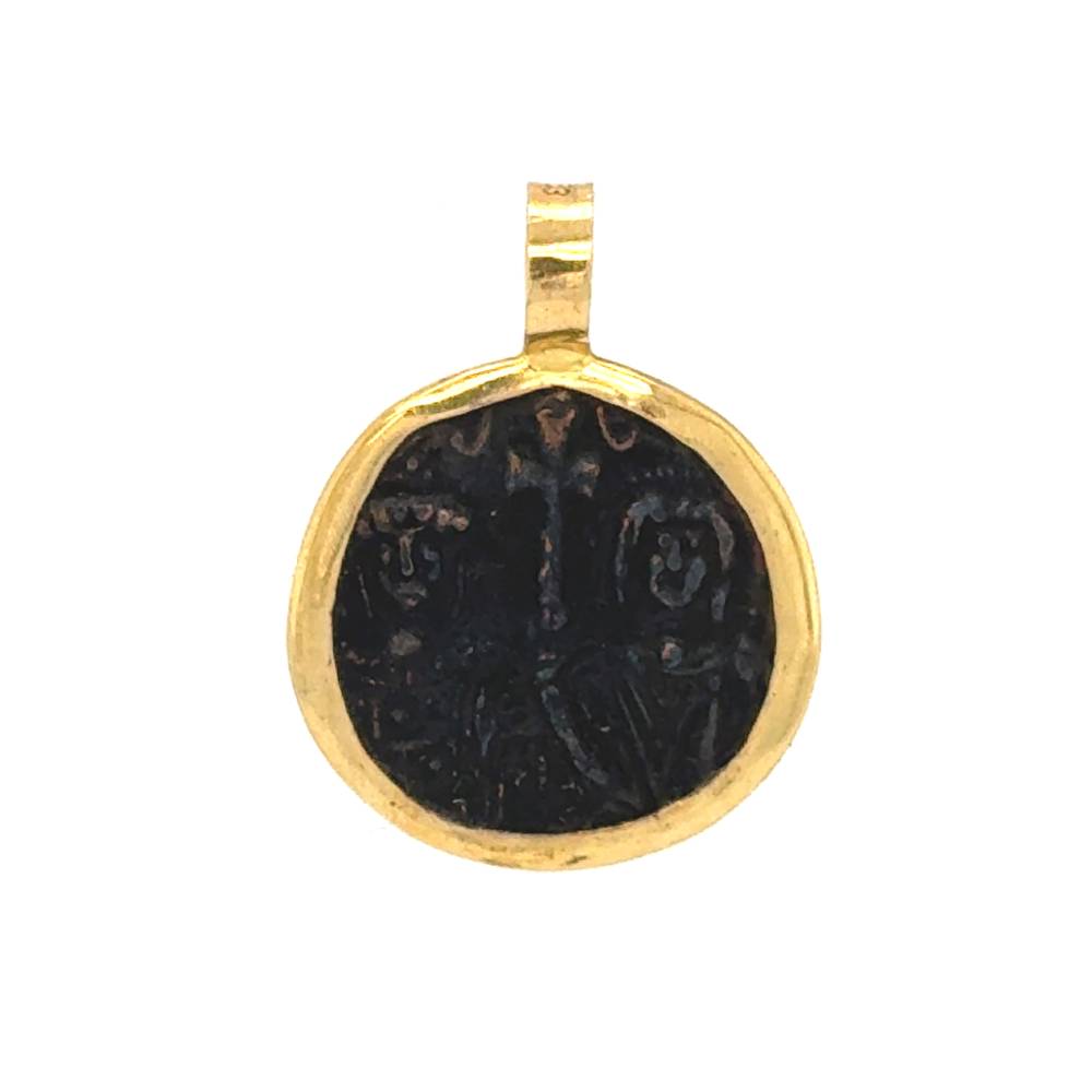A double-sided Constantinato amulet pendant, made of copper and a wreath of K9 gold (375°).