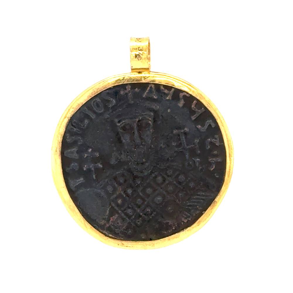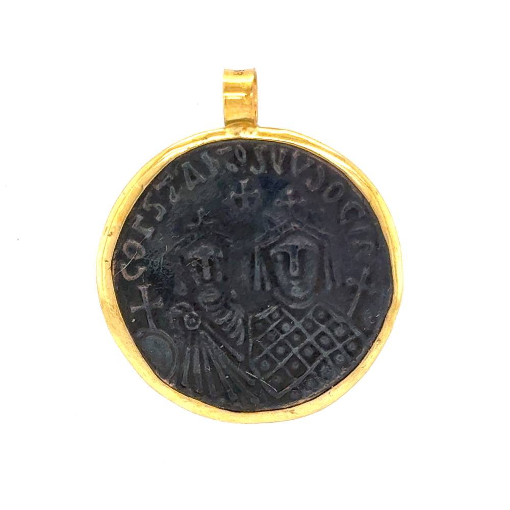 A double-sided Constantinato amulet pendant, made of copper and a wreath of K9 gold (375°).