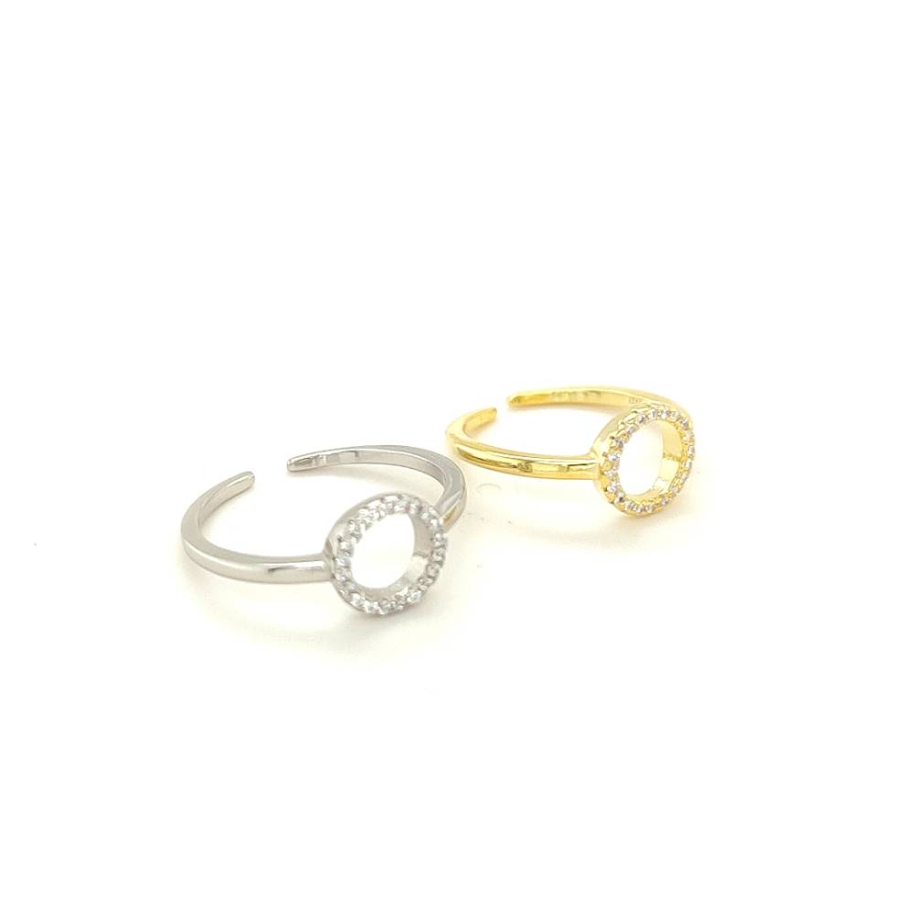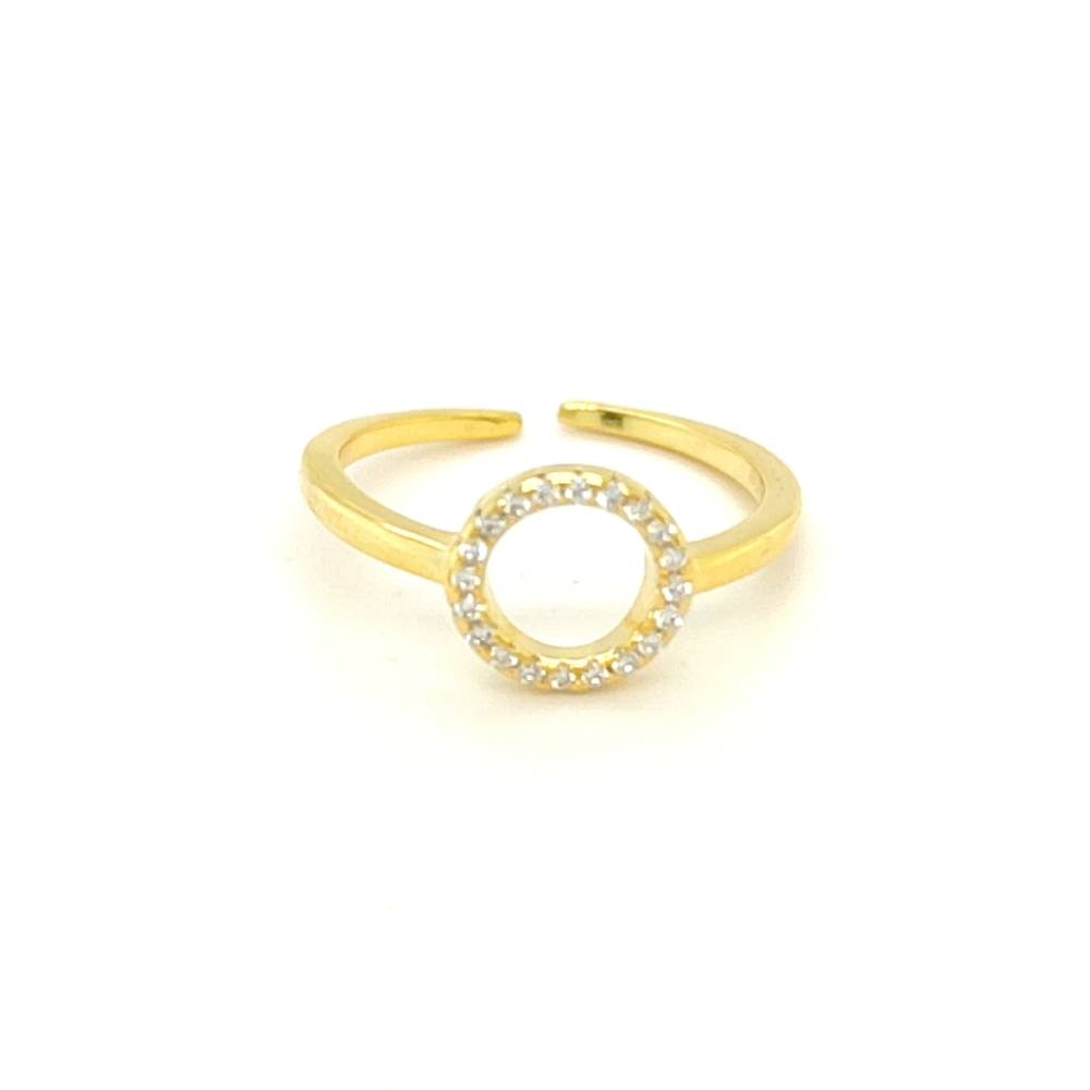 Ένα δαχτυλίδι ρυθμιζόμενο με σχέδιο κύκλος από επιχρυσωμένο ασήμι 925° με λευκά ζιργκόν.