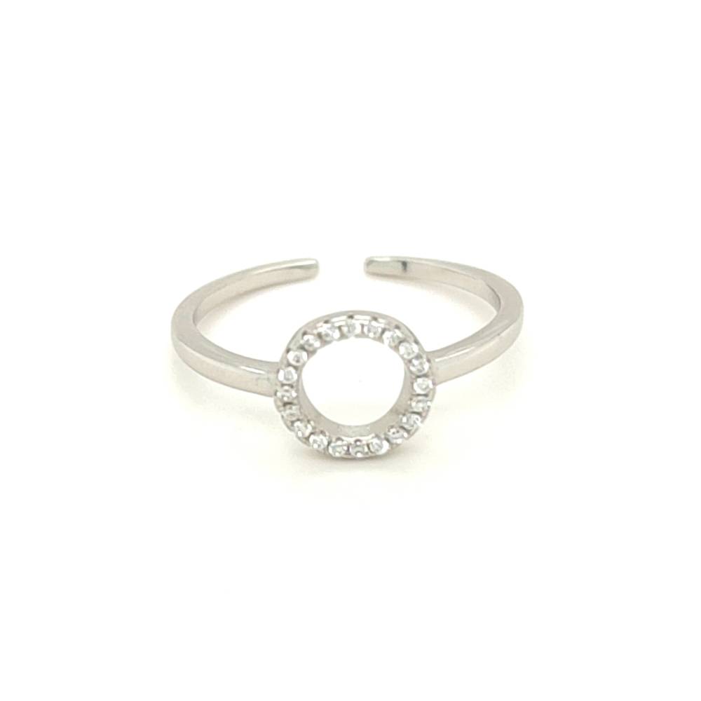 Ένα δαχτυλίδι ρυθμιζόμενο με σχέδιο κύκλος από ασήμι 925° με λευκά ζιργκόν.