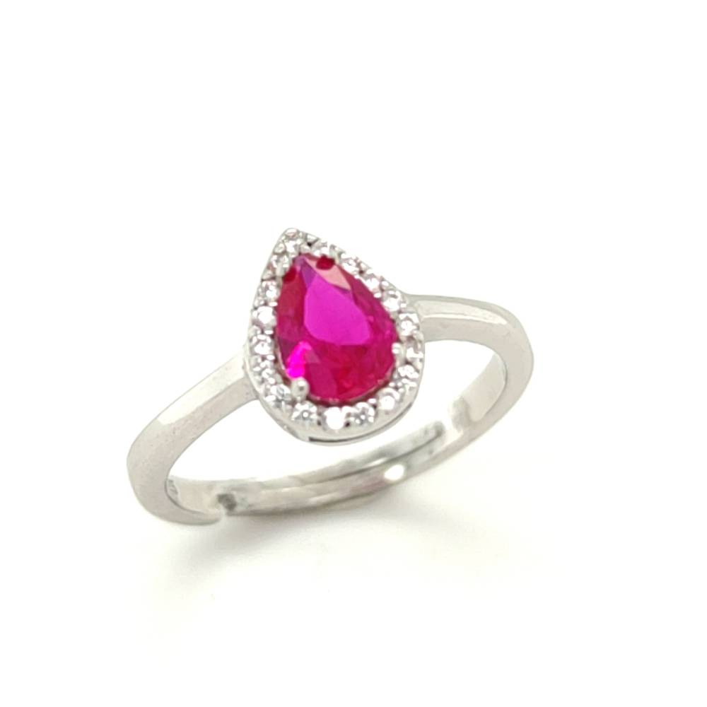 Δαχτυλίδι γυναικείο, ασήμι (925°) ροζέτα δάκρυ με κόκκινή πέτρα