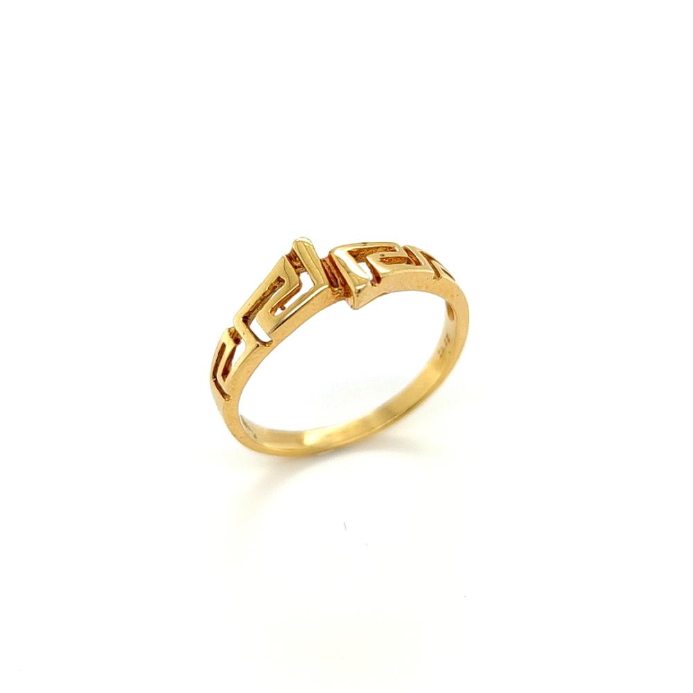 Δαχτυλίδι γυναικείο με σύμβολο μαίανδρο, με χρυσή γυαλιστερή επιφάνεια. Το δαχτυλίδι είναι φτιαγμένο από χρυσό Κ14 (585°). Ο Μαίανδρος είναι το αρχαιότερο ελληνικό σύμβολο, Νίκης και Ενότητας, σύμβολο του Άπειρου και της Αιώνιας Ζωής. Εμπνευσμένος, κατά την άποψη κάποιων ακαδημαϊκών, από τις πολυάριθμες στροφές του ποταμού Μαιάνδρου. Ο Μαίανδρος χρησιμοποιείται σε αγγεία, ναούς, μνημεία, γλυπτά, αντικείμενα, πολεμικά όπλα, πανοπλίες και κοσμήματα.