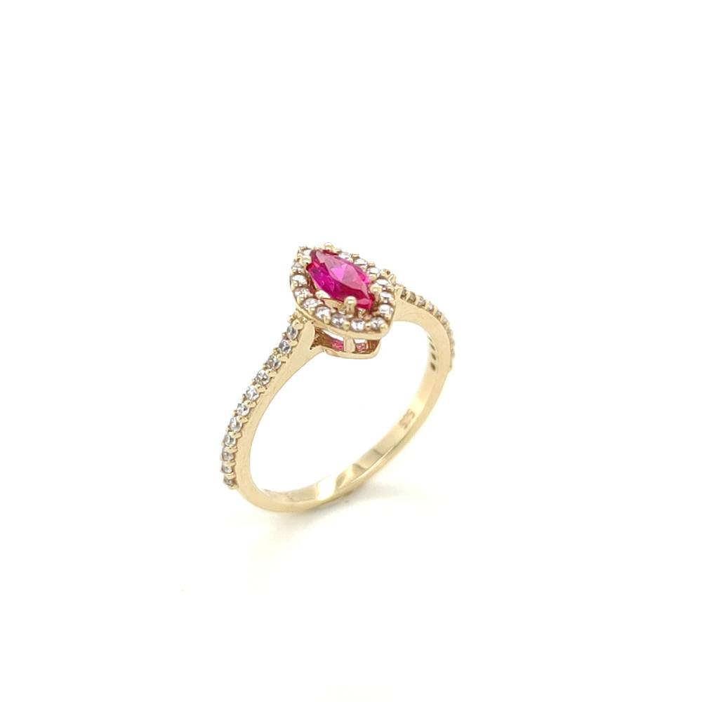 Δαχτυλίδι γυναικείο, χρυσός Κ14 (585°), ροζέτα ναβέτα με κόκκινο και λευκό ζιργκόν