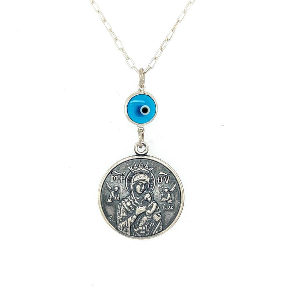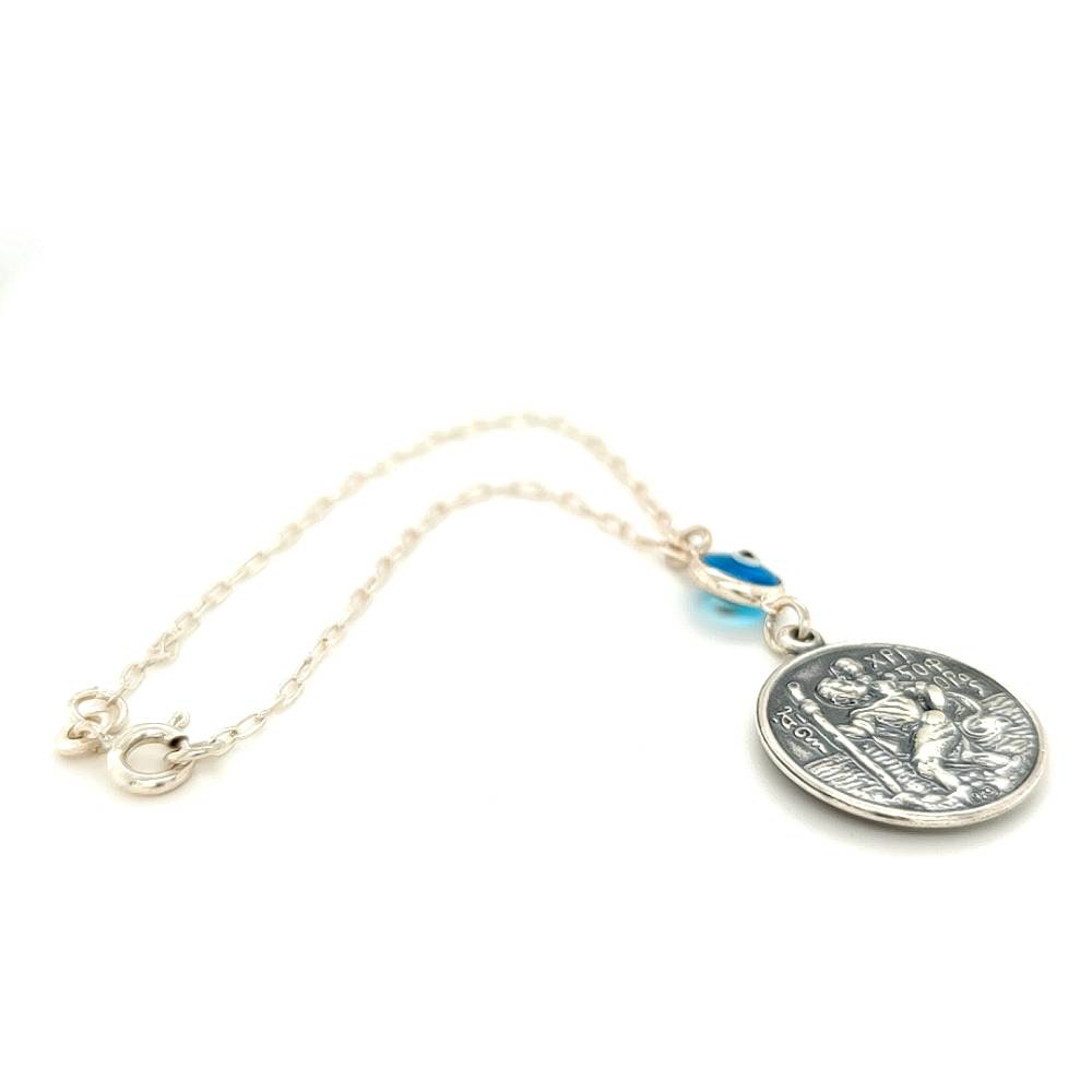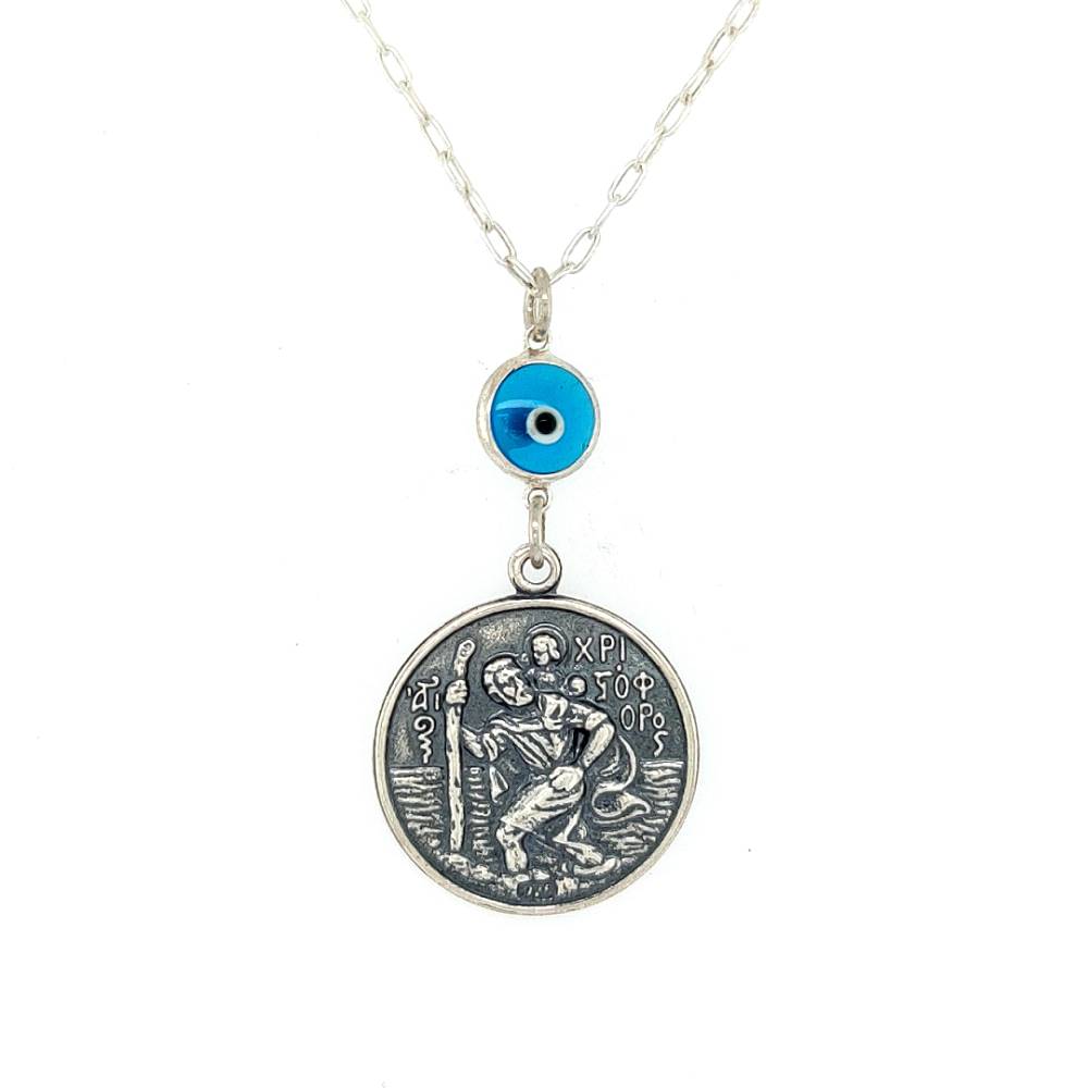 Φυλαχτό Αυτοκινήτου ασήμι (925°) διπλής όψεως Άγιος Χριστόφορος – Παναγία και μάτι
