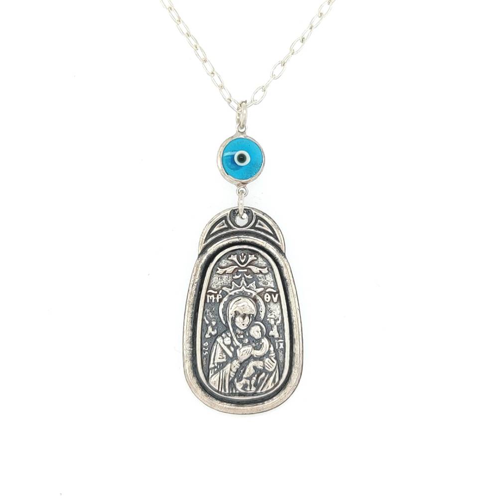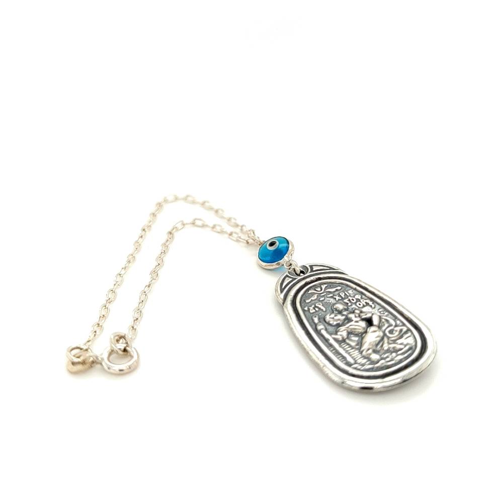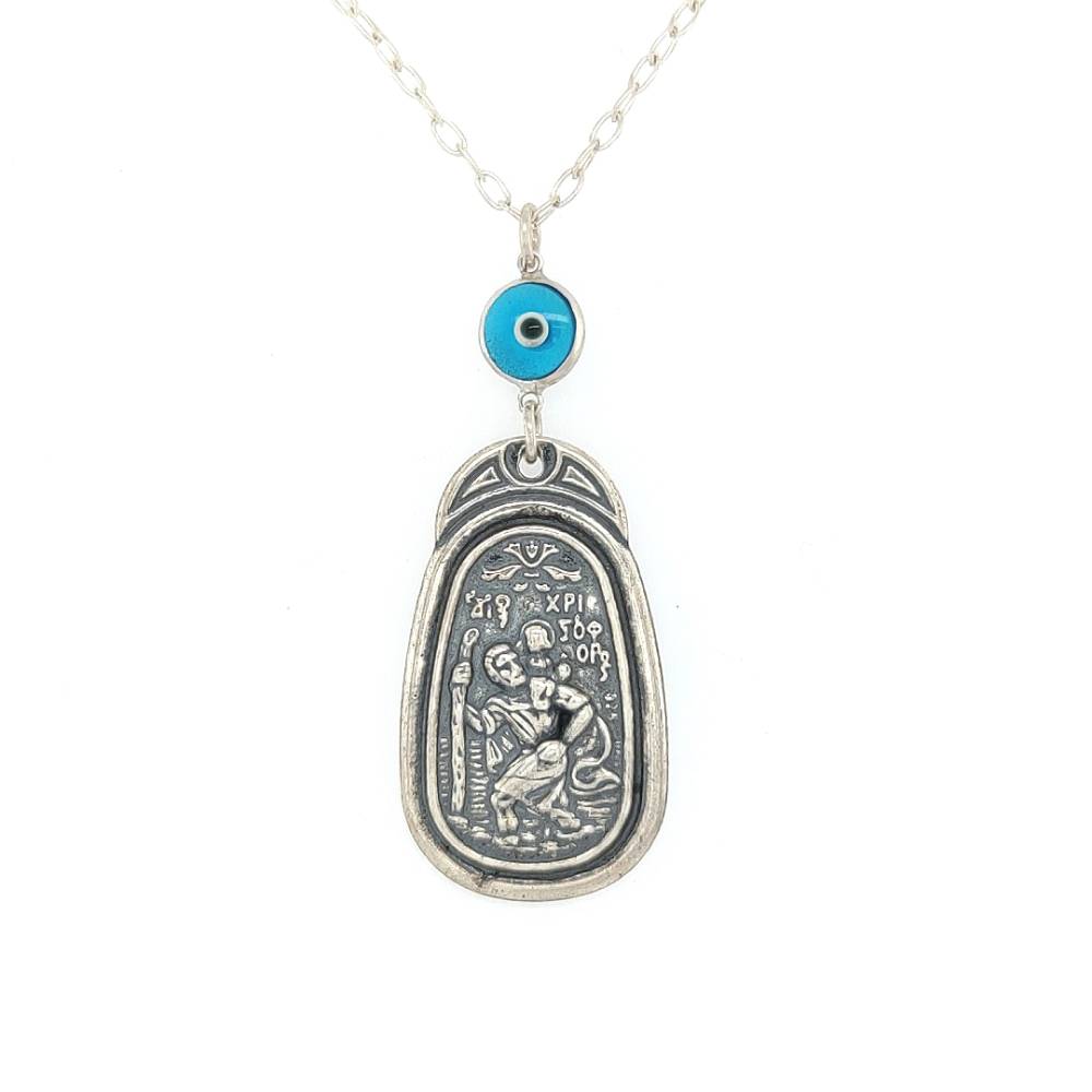 Φυλαχτό Αυτοκινήτου ασήμι (925°) διπλής όψεως Άγιος Χριστόφορος – Παναγία και μάτι