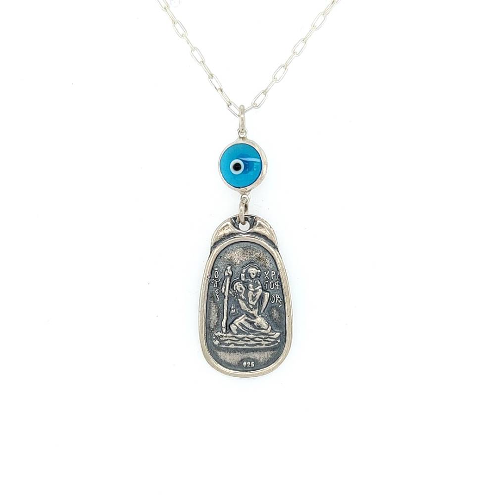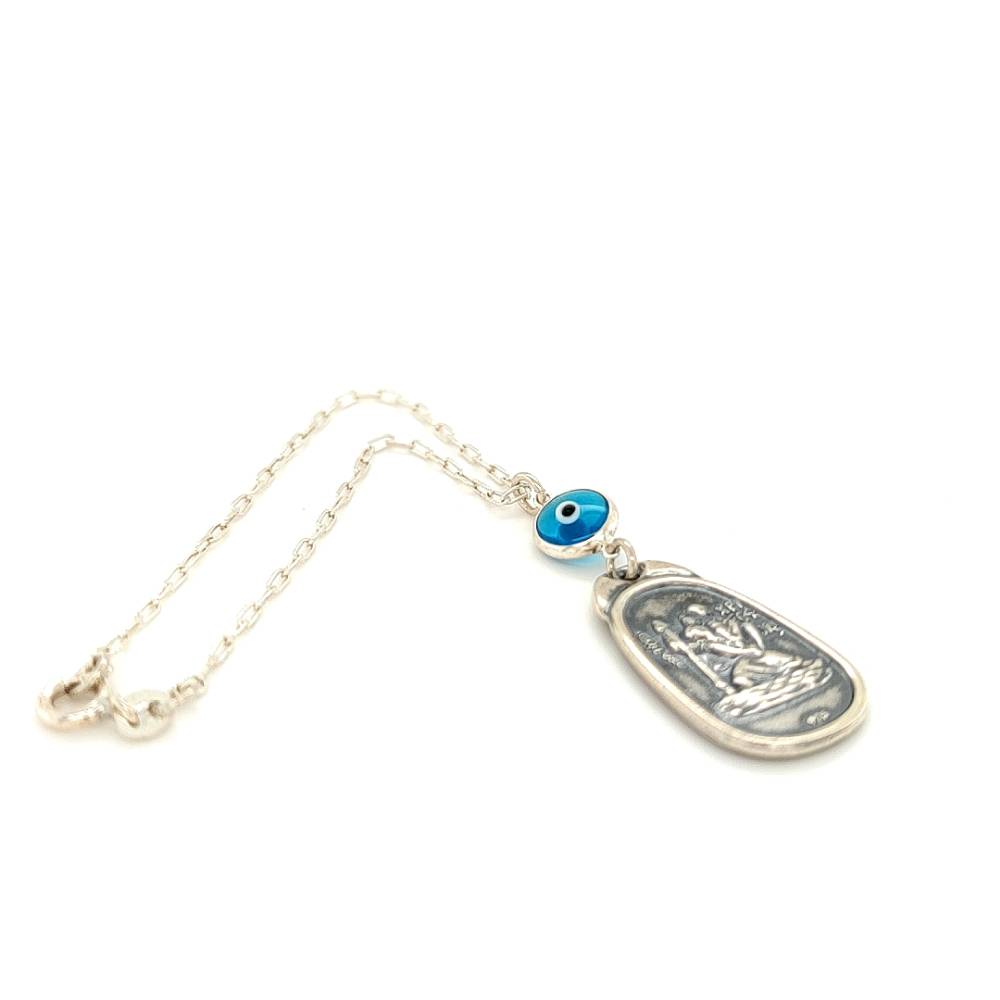 Φυλαχτό Αυτοκινήτου ασήμι (925°) διπλής όψεως Άγιος Χριστόφορος – Παναγία και μάτι