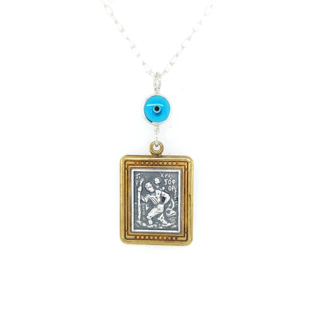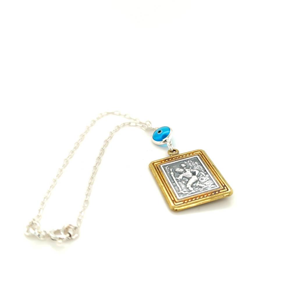 Φυλαχτό Αυτοκινήτου ασήμι (925°) διπλής όψεως Άγιος Χριστόφορος – Παναγία και μάτι