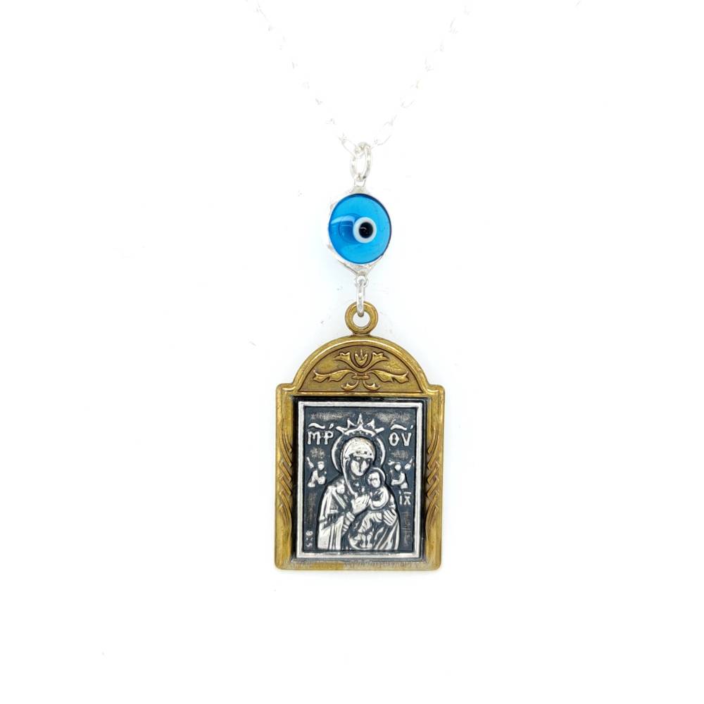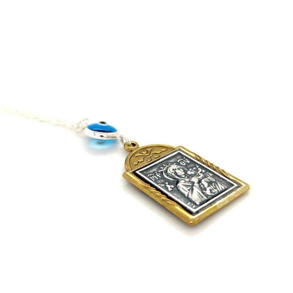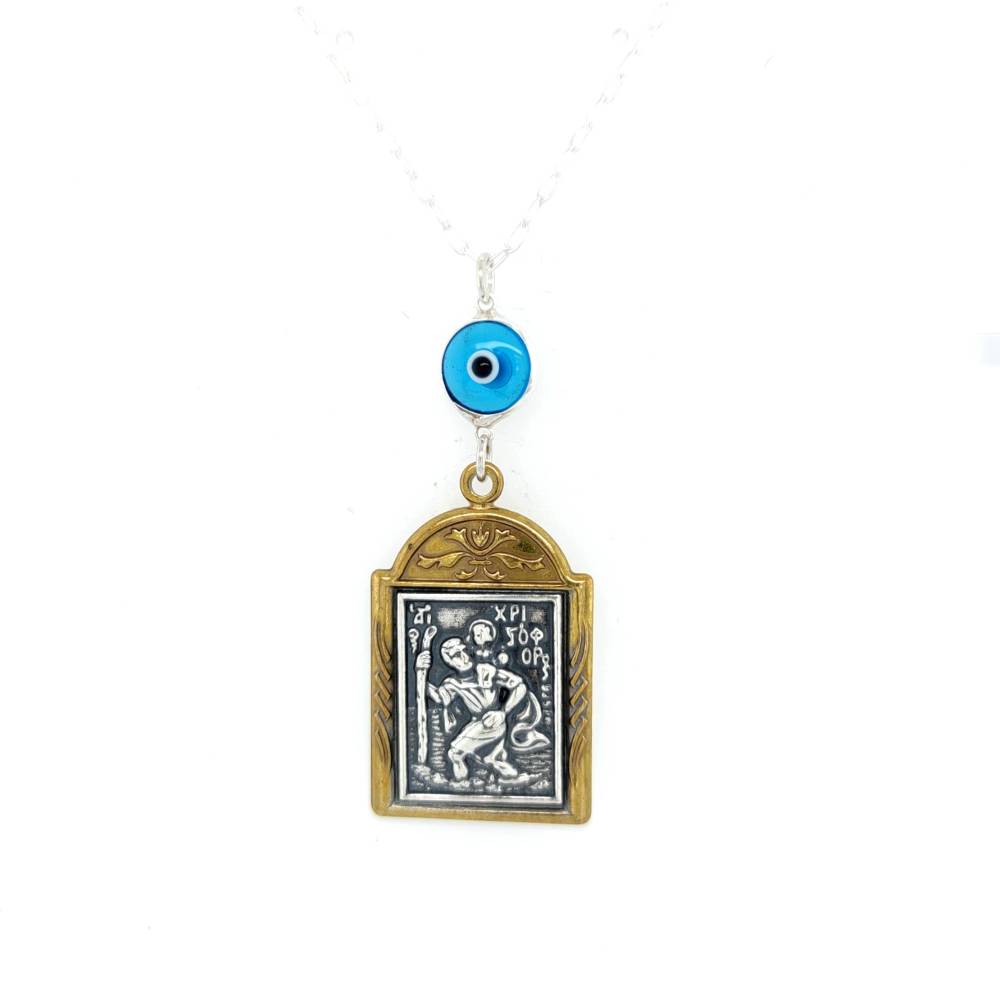 Φυλαχτό Αυτοκινήτου ασήμι (925°) διπλής όψεως Άγιος Χριστόφορος – Παναγία και μάτι