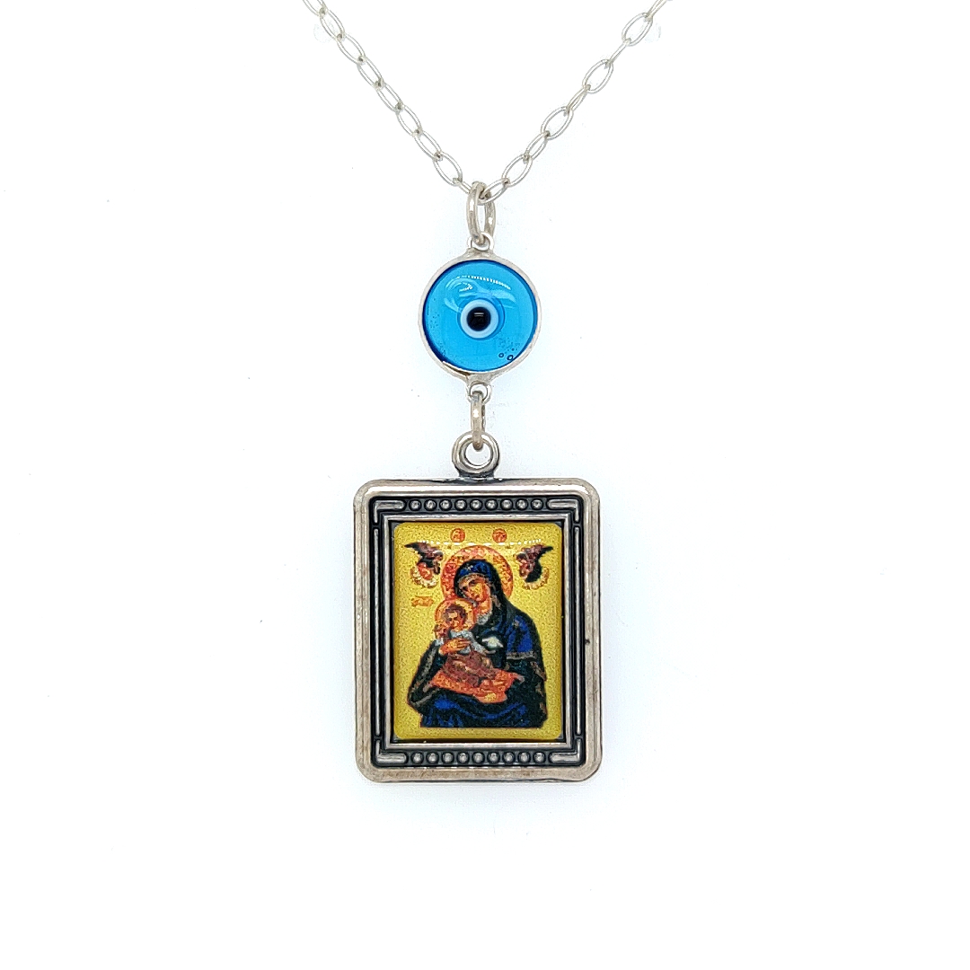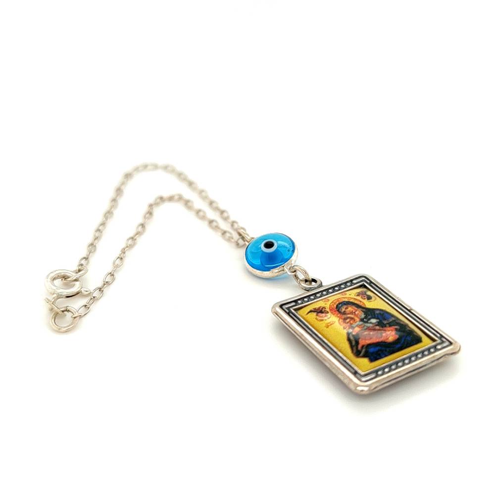 Φυλαχτό Αυτοκινήτου ασήμι (925°) διπλής όψεως Παναγία – Χριστός και μάτι
