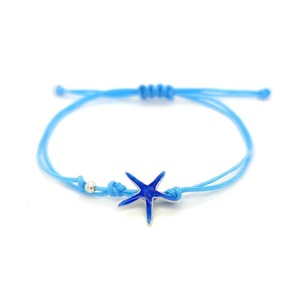 Bracelet with starfish made of silver (925°) with enamel in dark blue shade and adjustable rope.