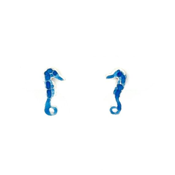 Earrings with seahorse made of silver (925°) with enamel in dark blue shade.