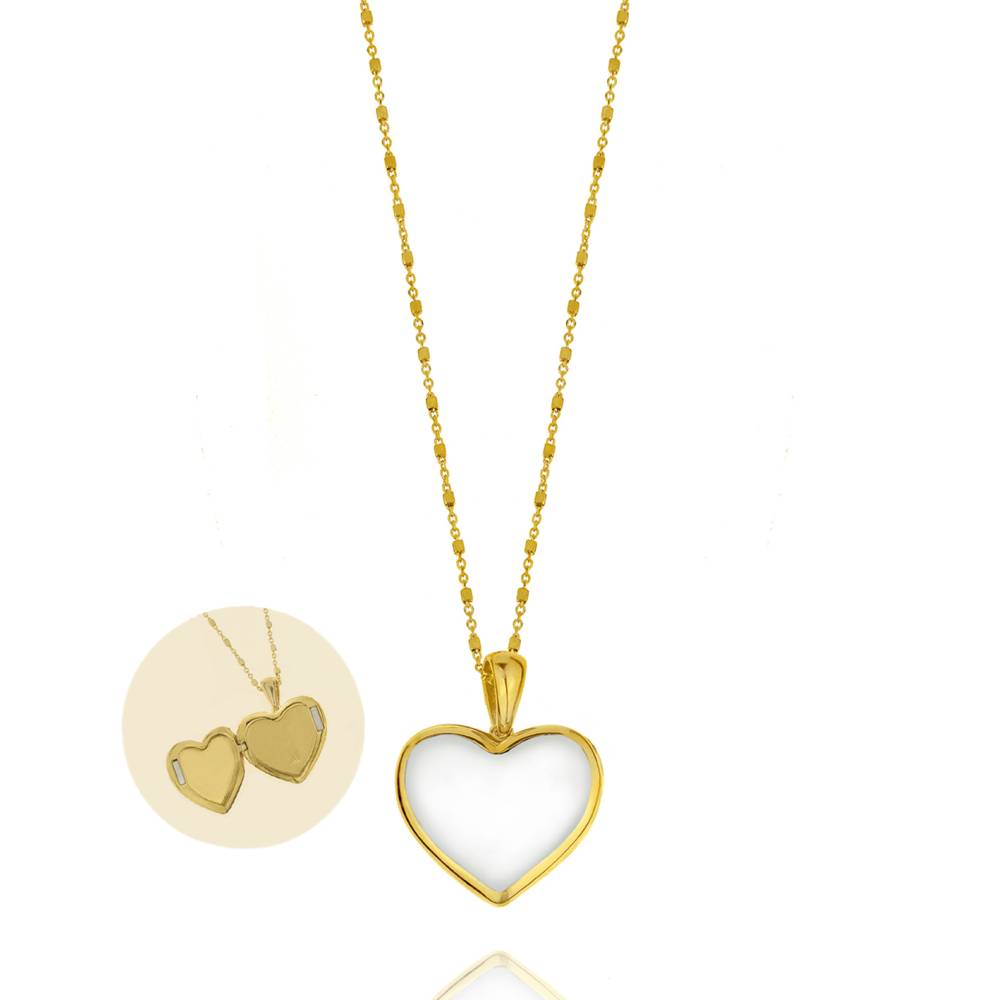 GREGIO Γυναικείο κολιέ, με καρδιά φωτογραφιοθήκη με λευκό σμάλτο, όπου μπορείτε να προσθέσετε φωτογραφία, από επιχρυσωμένο ασήμι (925°).