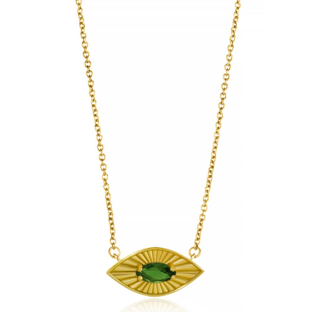 GREGIO Κολιέ γυναικείο, μάτι με πράσινο ζιργκόν, επιχρυσωμένο ασήμι (925°)