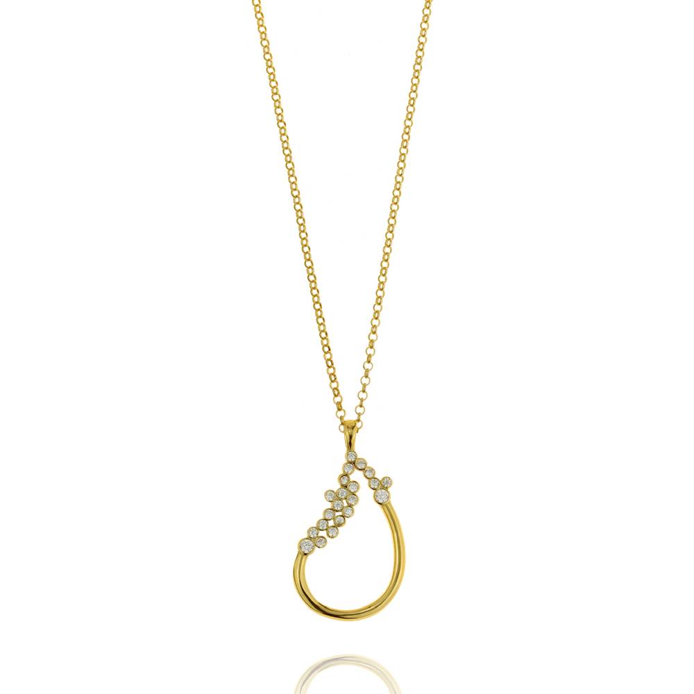 GREGIO Γυναικείο κολιέ σταγόνα με λευκά ζιργκόν, από επιχρυσωμένο ασήμι (925°).
