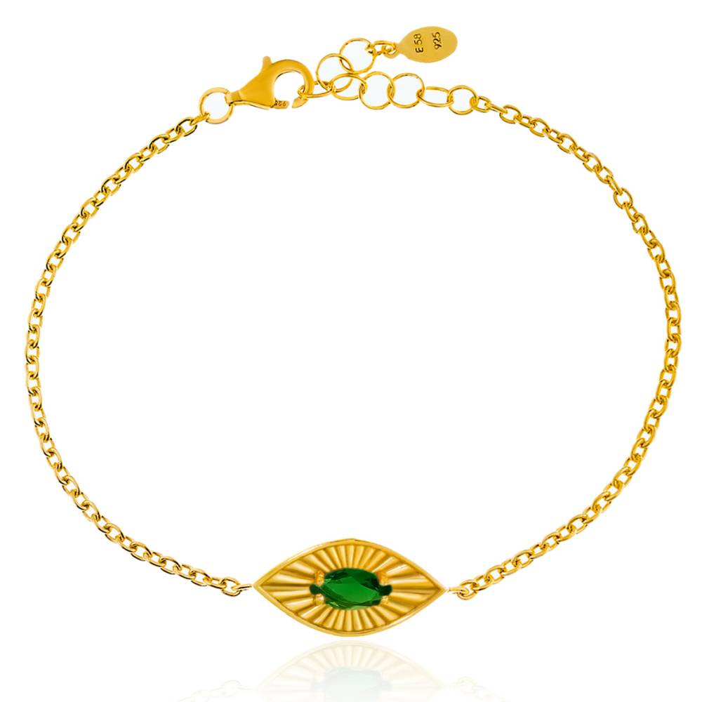 Βραχιόλι γυναικείο με πράσινο ζιργκόν από επιχρυσωμένο ασήμι (925°).