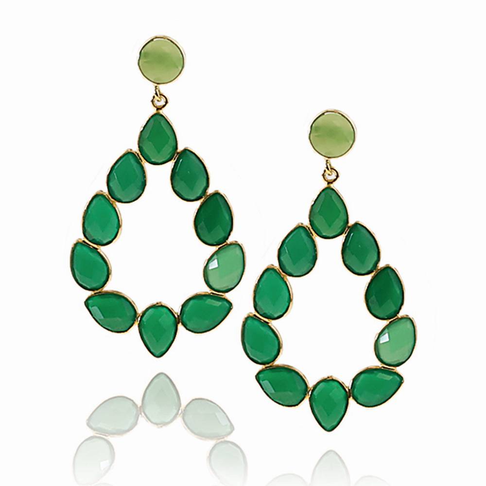 GREGIO Women’s pendant earrings with green onyx in the shape of a teardrop, made of silver (925°) gold plated.