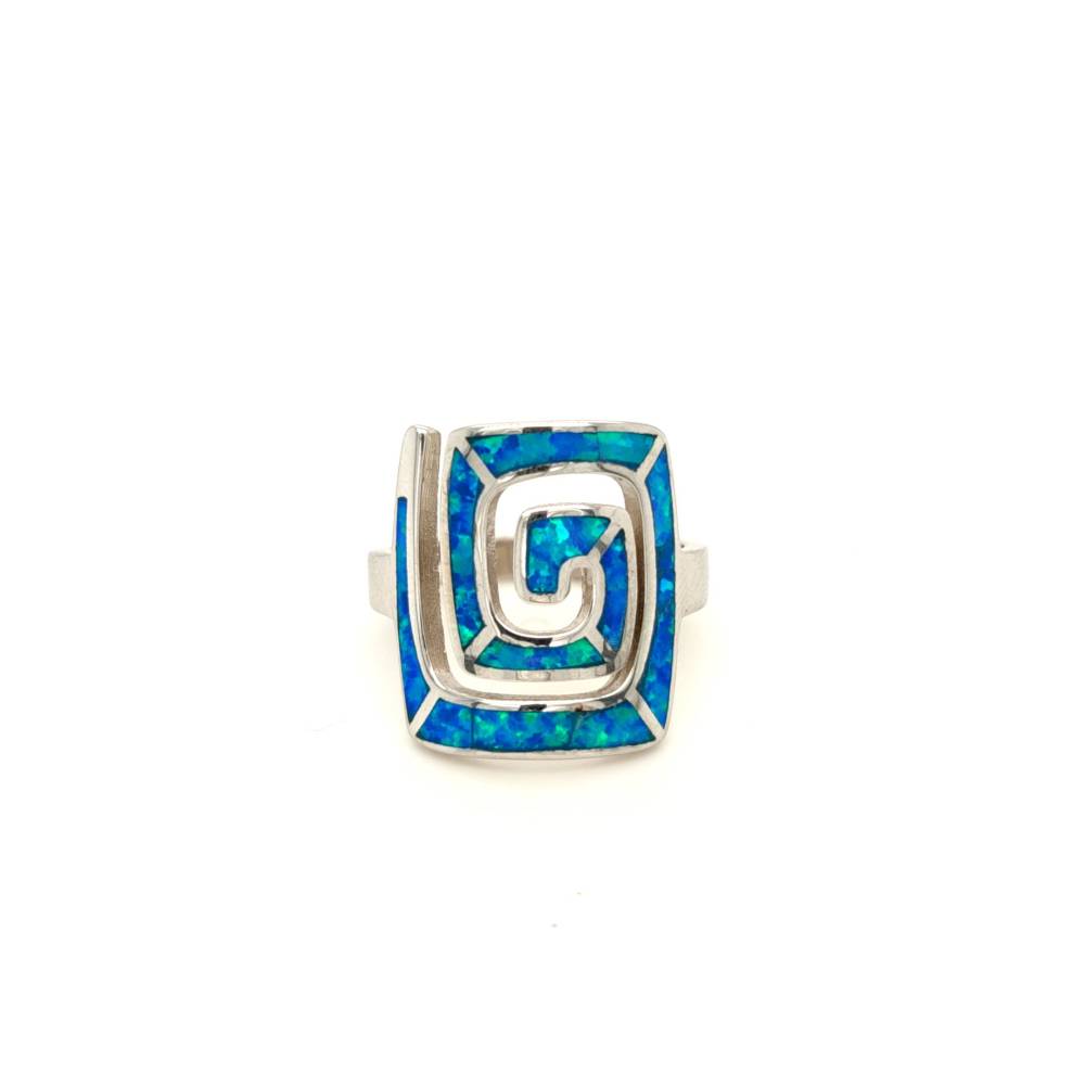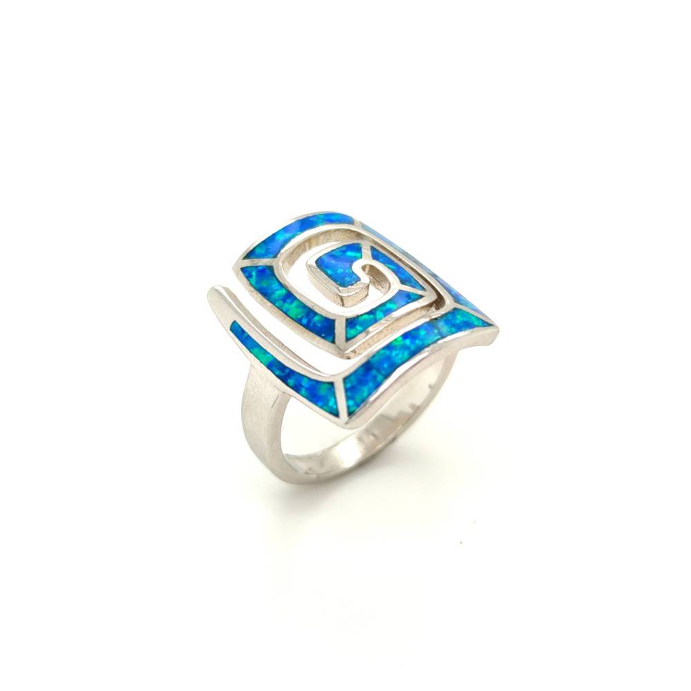 Γυναικείο δαχτυλίδι από επιροδιωμένο ασήμι (925°) με σύμβολο Μαίανδρο με τεχνητό opal. Ο Μαίανδρος είναι το αρχαιότερο ελληνικό σύμβολο, Νίκης και Ενότητας, σύμβολο του Άπειρου και της Αιώνιας Ζωής. Εμπνευσμένος, κατά την άποψη κάποιων ακαδημαϊκών, από τις πολυάριθμες στροφές του ποταμού Μαιάνδρου. Ο Μαίανδρος χρησιμοποιείται σε αγγεία, ναούς, μνημεία, γλυπτά, αντικείμενα, πολεμικά όπλα, πανοπλίες και κοσμήματα.