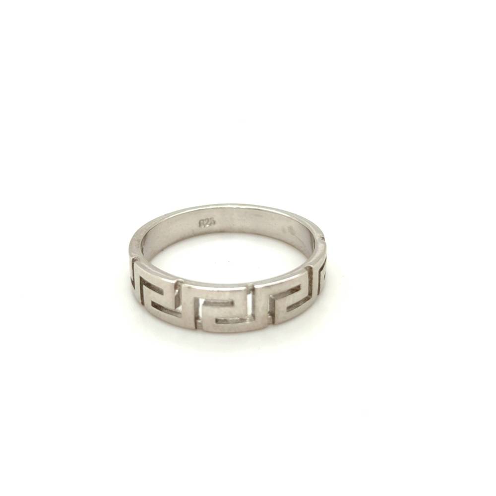 Γυναικείο δαχτυλίδι ντεγκραντέ από επιροδιωμένο ασήμι (925°) με σύμβολο Μαίανδρο. Ο Μαίανδρος είναι το αρχαιότερο ελληνικό σύμβολο, Νίκης και Ενότητας, σύμβολο του Άπειρου και της Αιώνιας Ζωής. Εμπνευσμένος, κατά την άποψη κάποιων ακαδημαϊκών, από τις πολυάριθμες στροφές του ποταμού Μαιάνδρου. Ο Μαίανδρος χρησιμοποιείται σε αγγεία, ναούς, μνημεία, γλυπτά, αντικείμενα, πολεμικά όπλα, πανοπλίες και κοσμήματα.