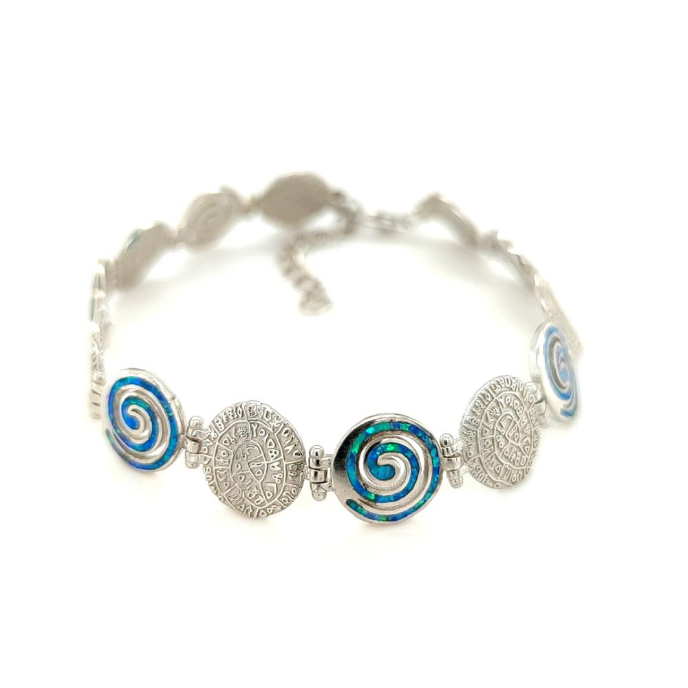 Γυναικείο βραχιόλι, ασήμι (925°), Δίσκος της Φαιστού και Σπείρα με τεχνητό opal