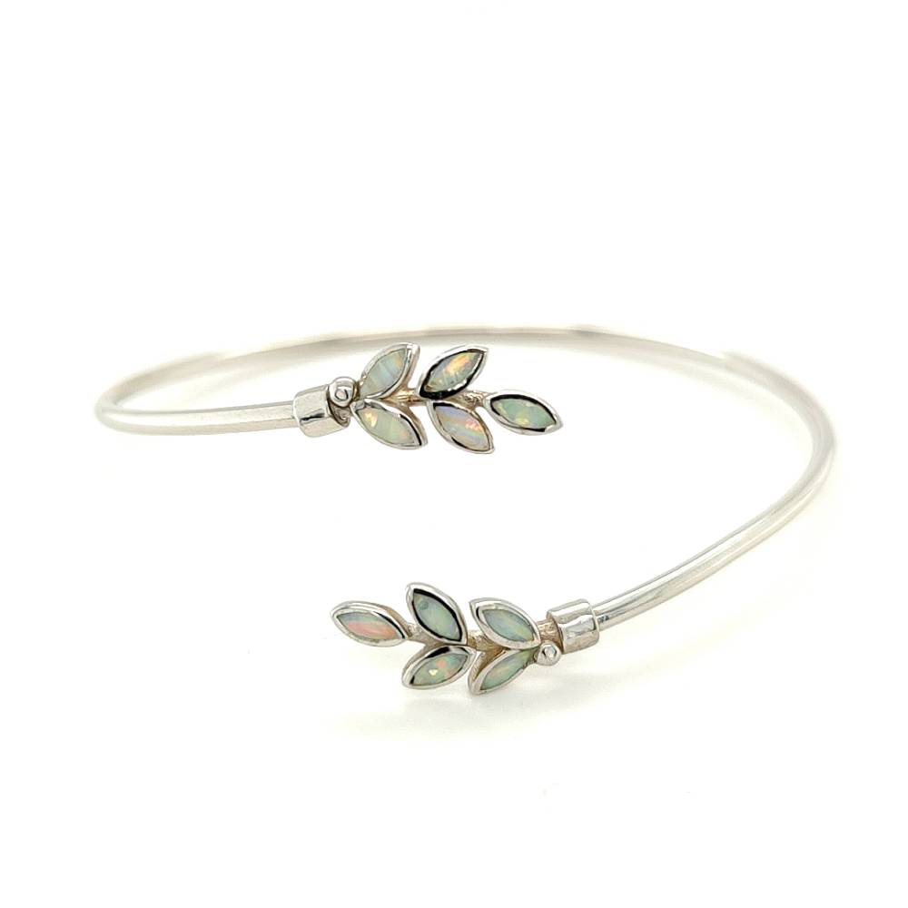 Γυναικείο βραχιόλι, ασήμι (925°), Φύλλο ελιάς με άσπρο τεχνητό opal