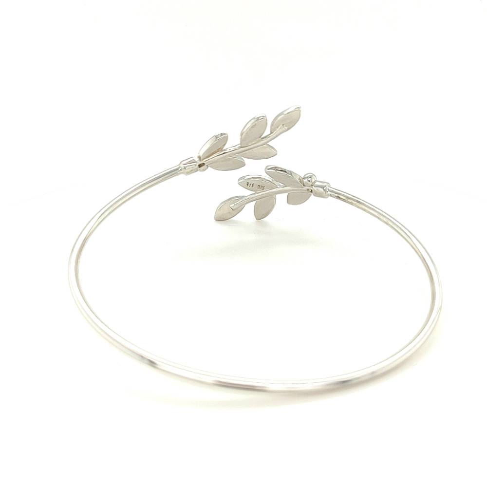 Γυναικείο βραχιόλι από ασήμι (925°) με φύλλα ελιάς με τεχνητό opal. Η ελιά για τους αρχαίους Έλληνες ήταν σύμβολο των ολυμπιακών ιδεωδών, της Ειρήνης, της Σοφίας και της Νίκης. Γι’ αυτό και το μοναδικό βραβείο που έπαιρνε ο Ολυμπιονίκης ήταν ένα στεφάνι φτιαγμένο από κλαδί ελιάς, ο «κότινος».
