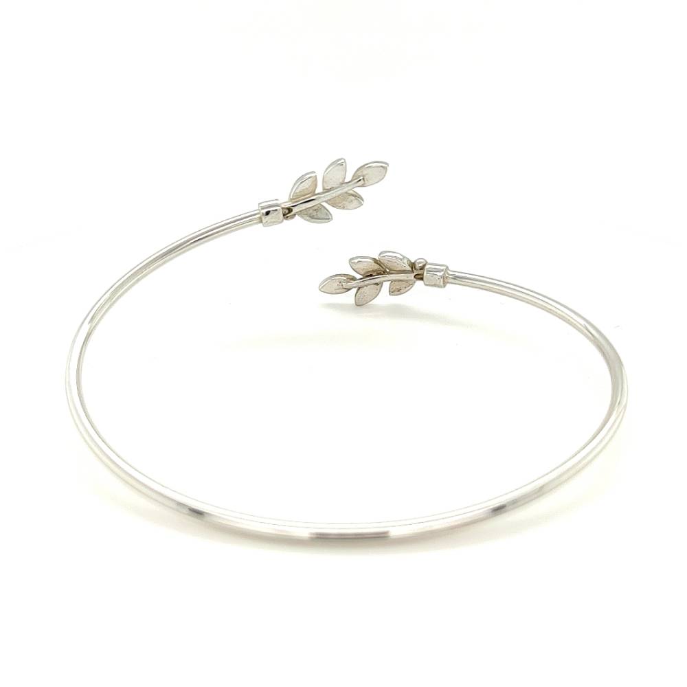 Γυναικείο βραχιόλι από ασήμι (925°) με φύλλα ελιάς με τεχνητό opal. Η ελιά για τους αρχαίους Έλληνες ήταν σύμβολο των ολυμπιακών ιδεωδών, της Ειρήνης, της Σοφίας και της Νίκης. Γι’ αυτό και το μοναδικό βραβείο που έπαιρνε ο Ολυμπιονίκης ήταν ένα στεφάνι φτιαγμένο από κλαδί ελιάς, ο «κότινος».