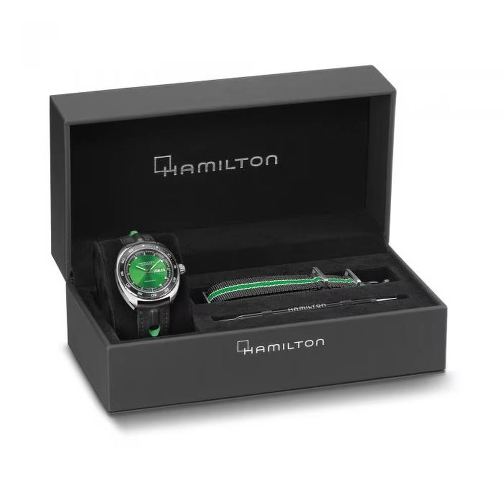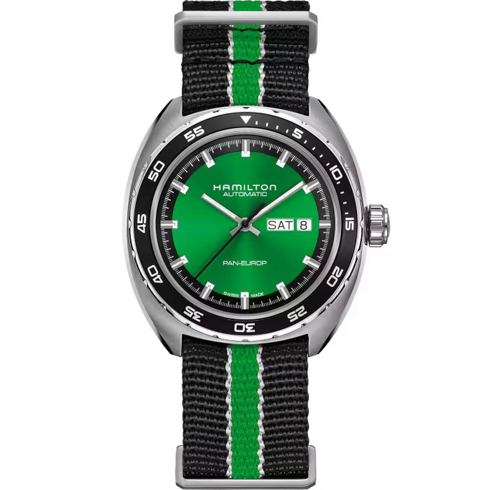 Don’t let the Pan Europ name fool you – this watch embodies pure Hamilton American spirit and is ready to join you as the perfect passenger on a classic American road trip. You’ll always be stylishly on time and the automatic movement will keep you moving forward. If you need a break, the power reserve is there to back you up and the day date display ensures you’ll never lose track of time. With a choice of NATO or leather strap, it’s calm, classic and very versatile.