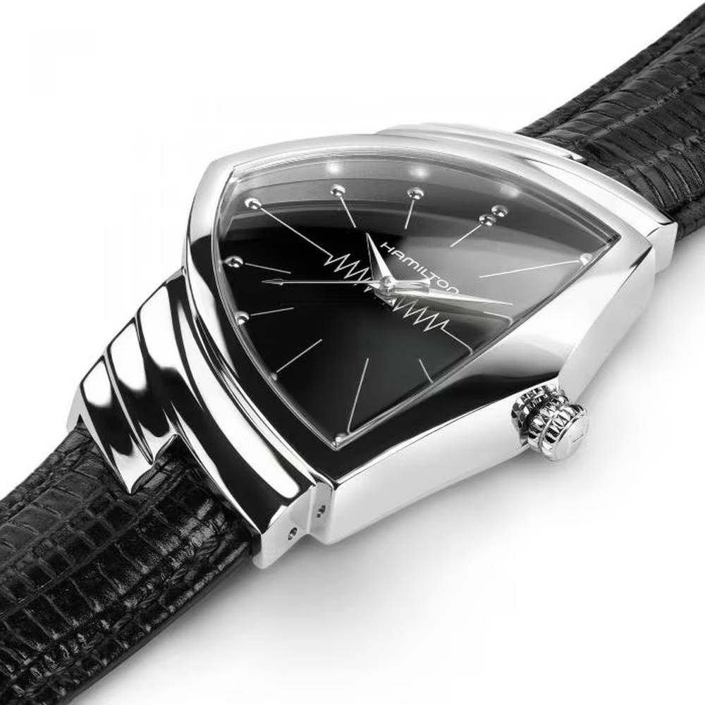 Hamilton Men’s watch from the Jazzmaster collection in stainless steel featuring automatic movement, Sapphire glass and chronographs on its white dial. The piece is coming together with a dark brown leather wrist strap.