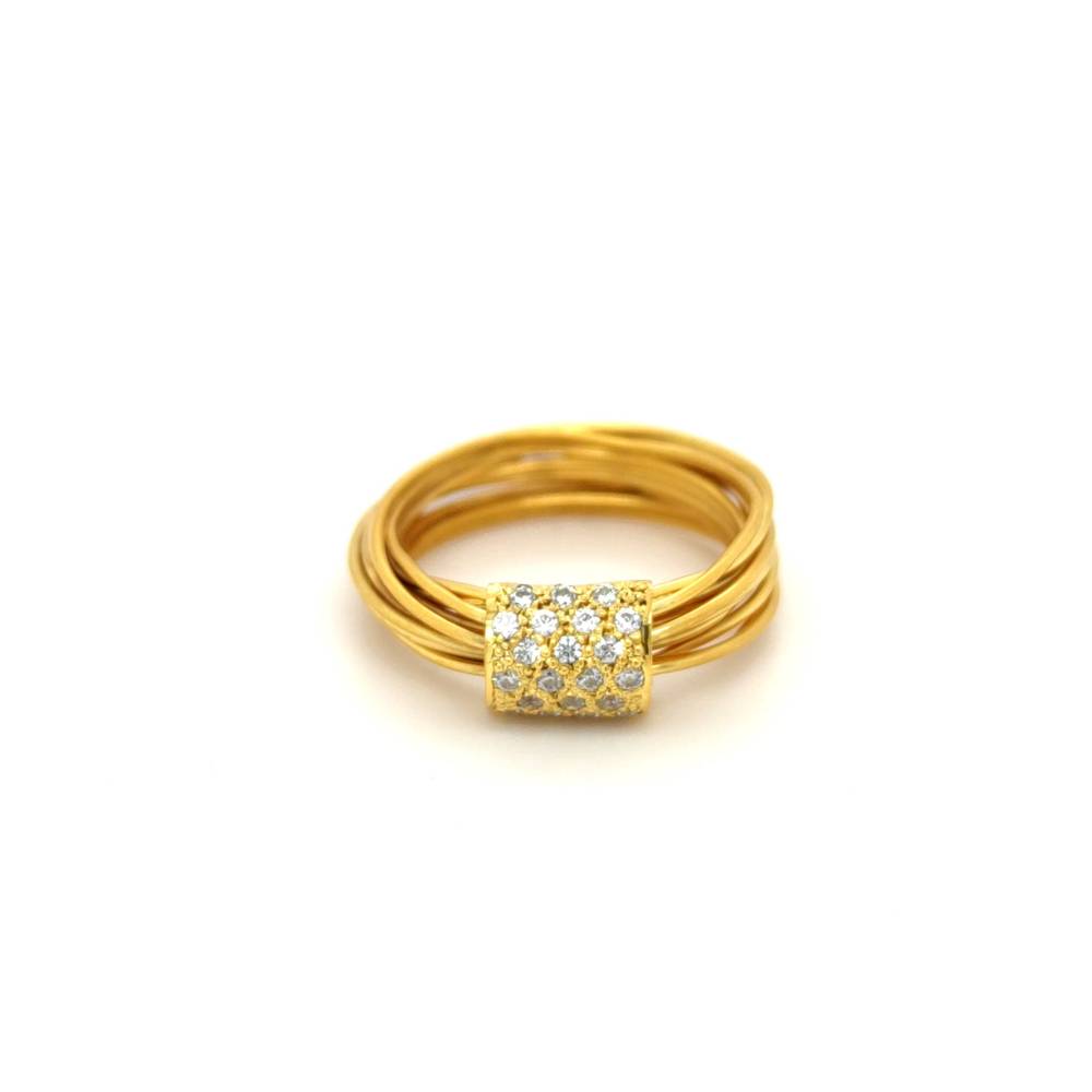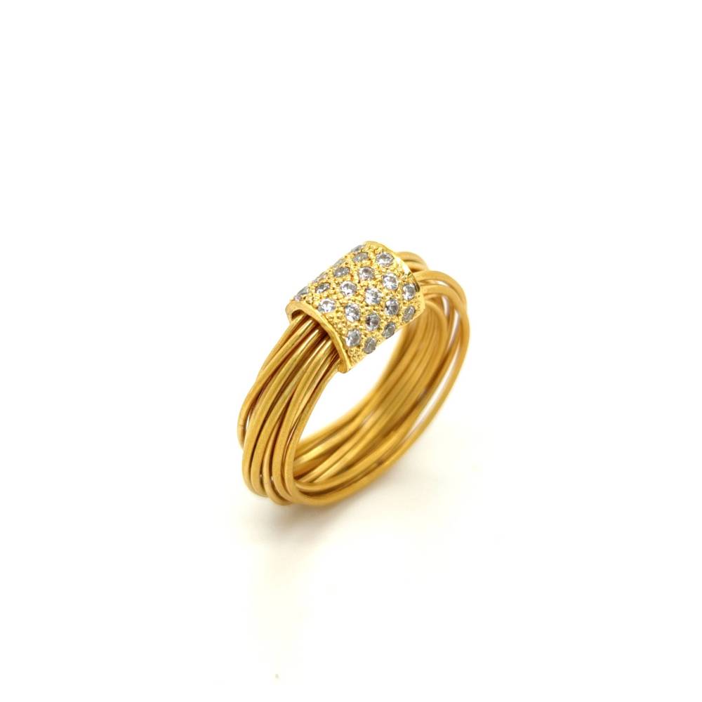 A handmade women’s ring adorned by white zircon and is made of gold K14 (585°).