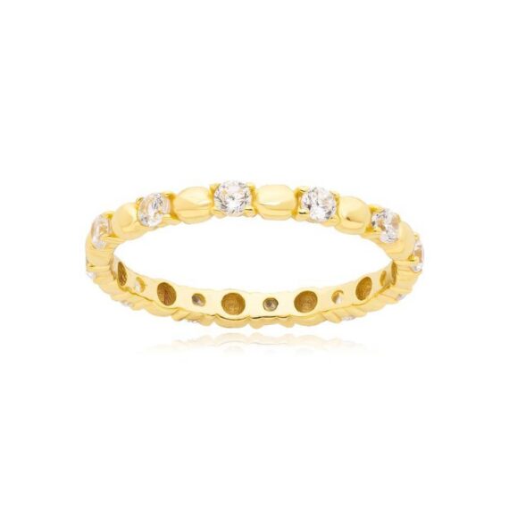 Γυναικείο δαχτυλίδι με λευκά ζιργκόν από επιχρυσωμένο ασήμι (925°).