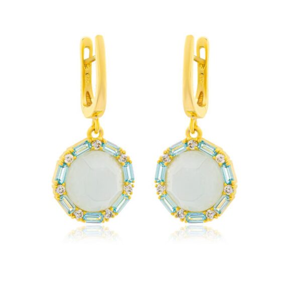 Γυναικεία σκουλαρίκια κρεμαστά με λευκά και μπλε ζιργκόν, τα οποία είναι φτιαγμένα από επιχρυσωμένο ασήμι (925°).