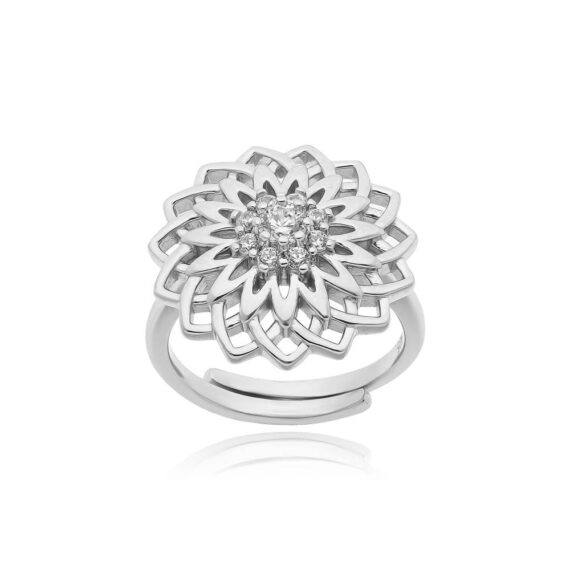 Γυναικείο δαχτυλίδι λουλούδι με λευκά ζιργκόν, φτιαγμένο από ασήμι (925°).