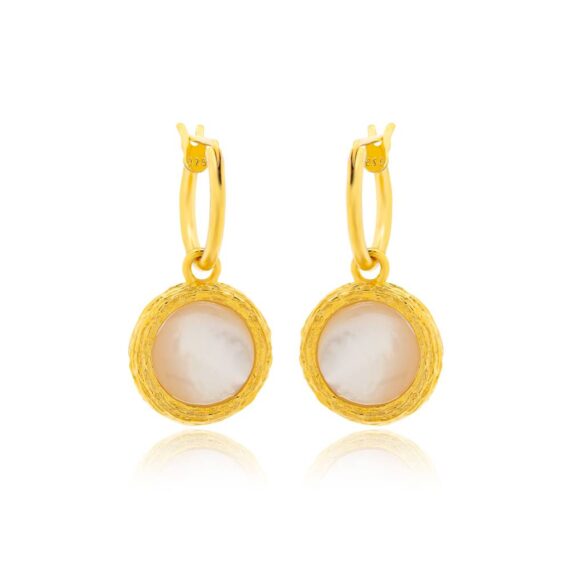 Γυναικεία σκουλαρίκια με μια κεντρική φίλντισι πέτρα, τα οποία είναι φτιαγμένα από επιχρυσωμένο ασήμι (925°).