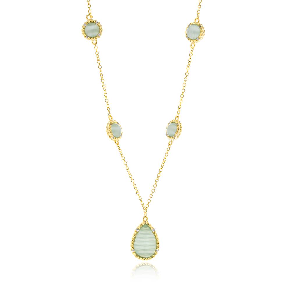 JOOLS ATELIER Women’s necklace with white zircon and light blue stones, gold-plated silver (925°), SN1517-1.2