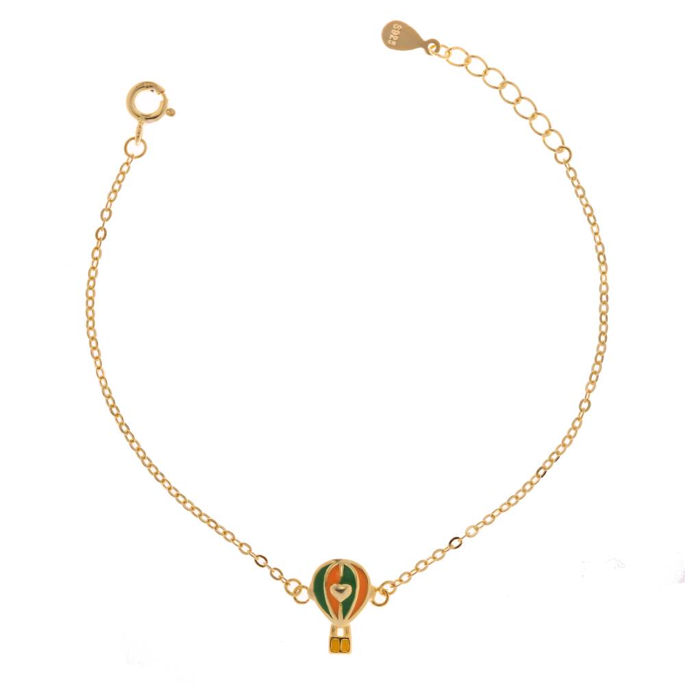 Children’s bracelet with hot air balloon. The bracelet is made of gold plated silver (925°).